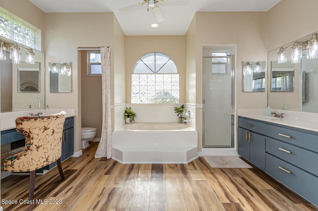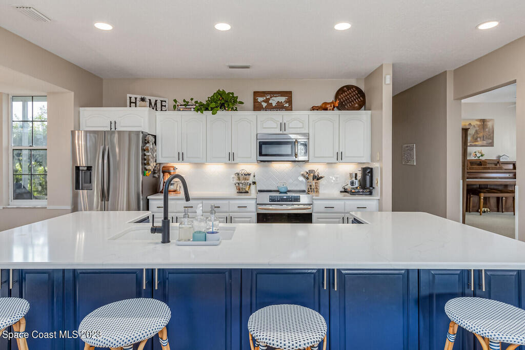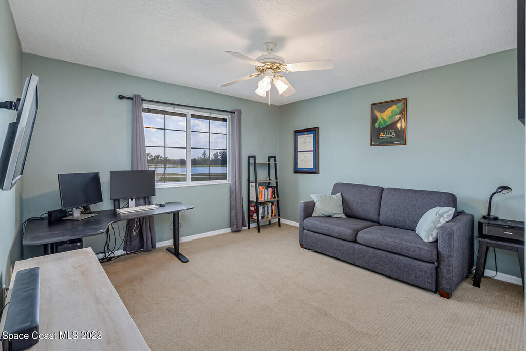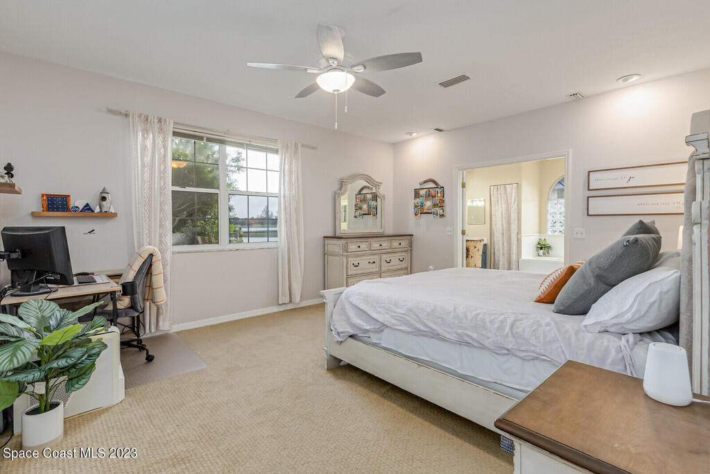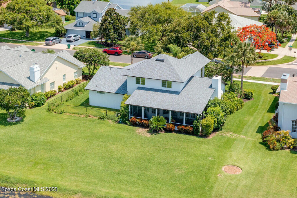 WATER VIEWS GALORE describes this FULLY UPDATED & MODERN family home in The Savannahs at Sykes Creek with a BRAND NEW ROOF. The heart of the home is OPEN & INVITING flowing from living & dining areas into the kitchen. The FULLY UPDATED kitchen features an ENORMOUS ISLAND overlooking the GOLF COURSE & LAKE. First floor offers CONVENIENT ACCESS to the MAIN BEDROOM with ATTRACTIVE, MODERN EN SUITE bathroom. Upstairs has ample room for the family & guests to enjoy AERIAL GOLF COURSE views which will delight all. LIBRARY/OFFICE SPACE on first floor makes work from home a breeze. Also makes for a confined PLAYROOM or other FLEX SPACE. The community offers CLUBHOUSE with restaurant, tennis courts, and playground. SOUGHT AFTER SCHOOLS, close to NASA, 528, the BEACHES and unlimited FUN-IN-THE-SUN!