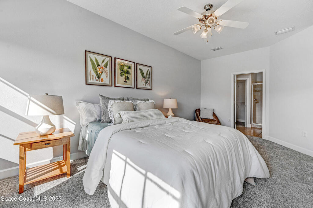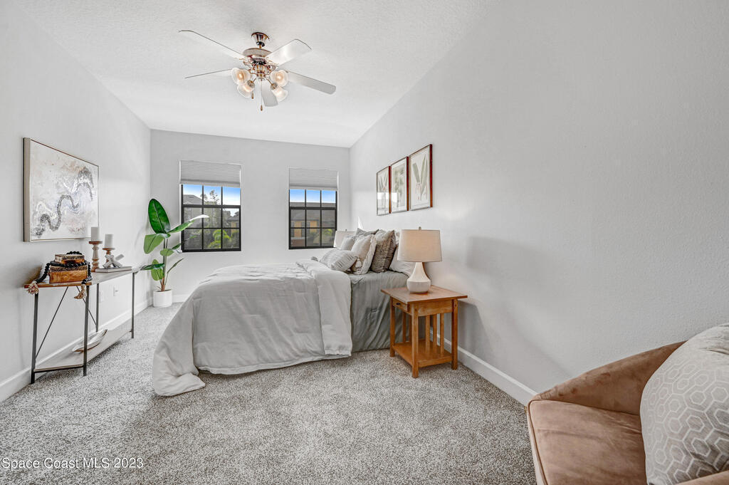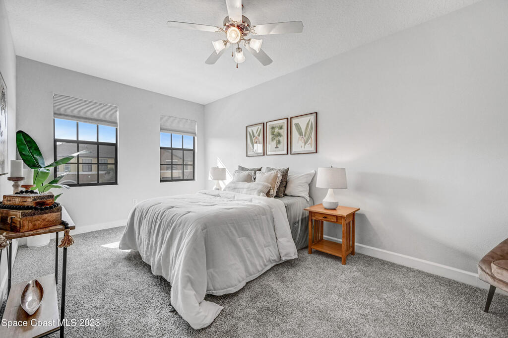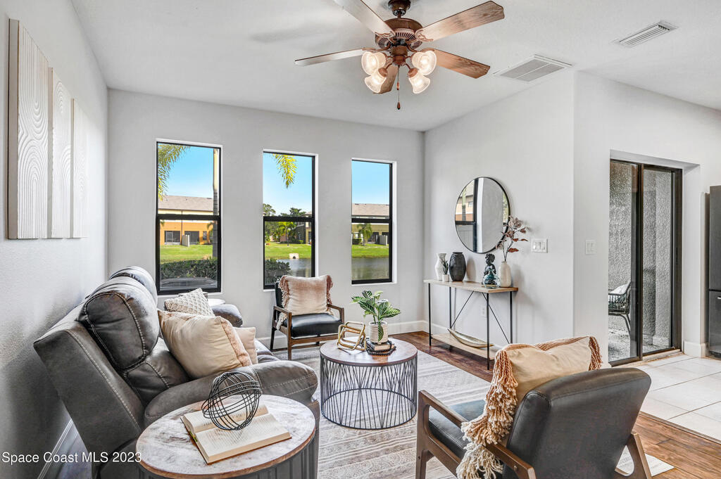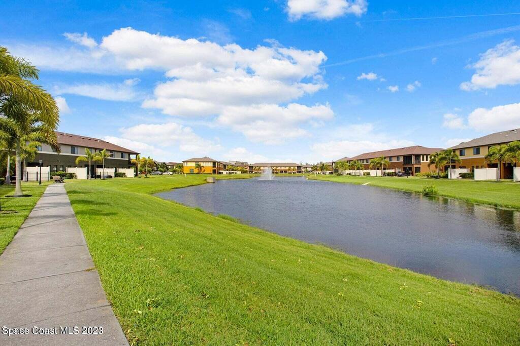 UNDER 300K **WATER VIEWS ** MOVE IN READY. FRESH PAINT -NEW CARPET. Pride of Ownership. Single Owner townhome in the highly sought after Meadow Pointe Community. Townhome boasts two bedrooms, two ensuite bathrooms, walk in closets and a half bathroom downstairs. The front door area courtyard is perfect for gardening and additional seating. One car attached garage. Open concept downstairs. The kitchen boasts solid wood cabinetry, island and stainless steel appliances. Community features include a walking path around the lake, outdoor cabana and sparkling pool. Close to schools, shopping, etc. Minutes to Patrick Space Force Base & the Beach.Schedule your showing today!