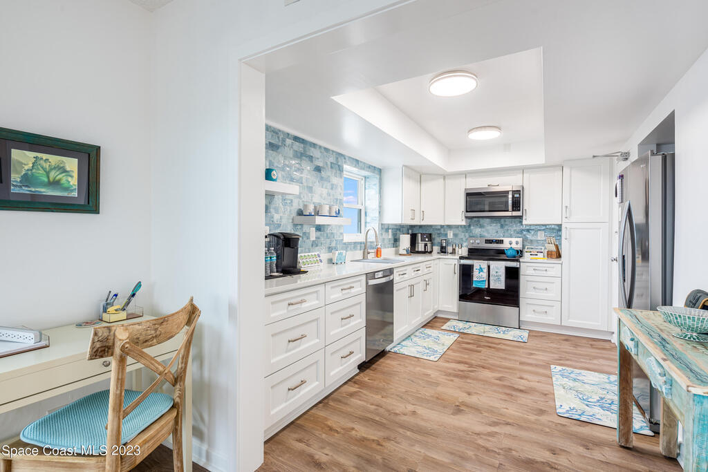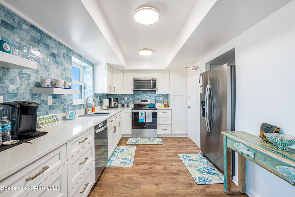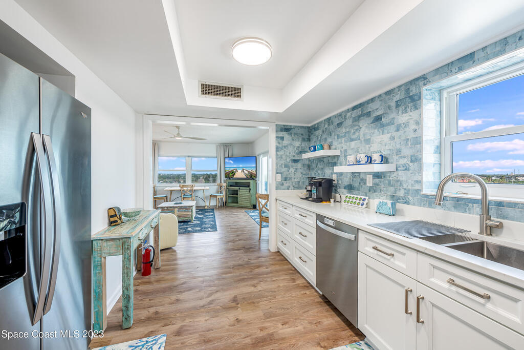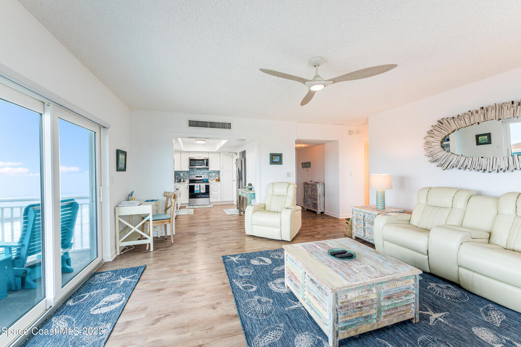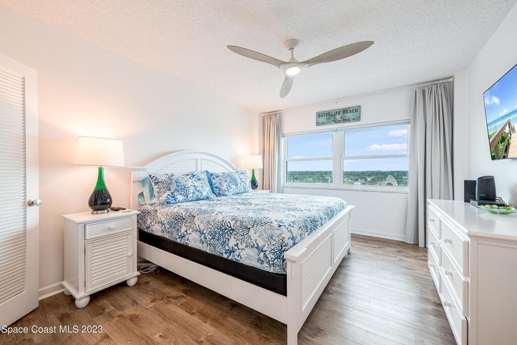 Relax and enjoy unparalleled ocean-to-river views from this top floor end unit in Satellite Beach, FL. Completely remodeled in 2023, updates include a chic gourmet kitchen with quartz countertops, custom cabinetry, glass tile backsplash and new appliances. New flooring, electrical, plumbing, A/C, impact glass windows & doors throughout. The Sandpiper is one of few oceanfront complexes on Florida's Space Coast with absolutely no rental restrictions. Daily, weekly monthly AirBnBs, VRBOs and STRs are allowed, AND there's no leasing office here to take a percentage of your revenue. Reasonable monthly condo fee covers internet, cable TV, water/sewer, exterior maintenance & insurance, trash pickup, pest control and access to building amenities. Seller has paid all active assessments.