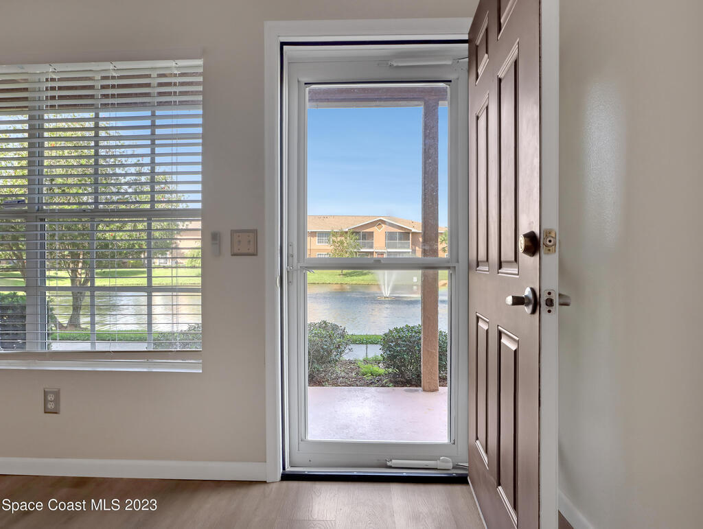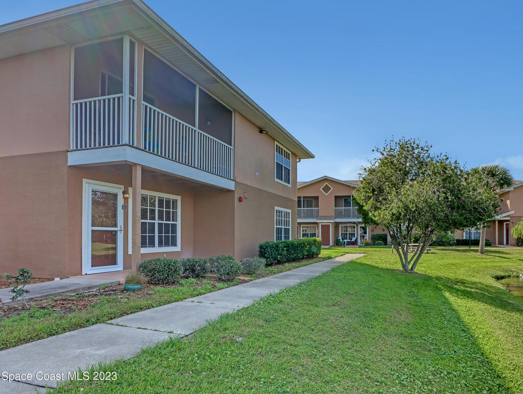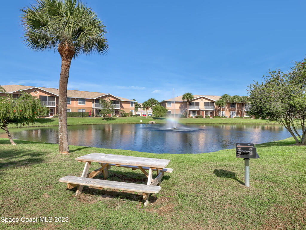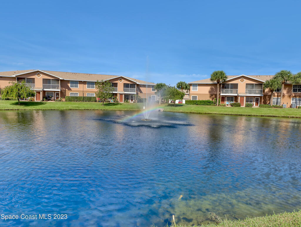 1st floor condo facing the lake!! Drop your bags move-in ready! COMPLETELY REMODELED 2022!!!! Replaced 10 screens, new kitchen cabinets from Lowes. Brand new quartz countertops, New kitchen sink, new kitchen appliances, new washer & dryer. All brand new doors: new front door, new storm door, new bedroom doors, new bathroom doors, new closet doors, 2 new vanities for each bathroom, Benjamin Moore painted professionally, Gorgeous new LVP flooring, All new trim work throughout. Updated light fixtures in bathrooms, all doors have new doorstops, All lighting throughout is new Allen Roth, Every electrical outlet cover brand new Allen Roth , All ceiling fans are new, Hallway lights are new. New shelving in closets. Close to the Viera Shopping and dining, 95, beaches, 45 min to Orlando.