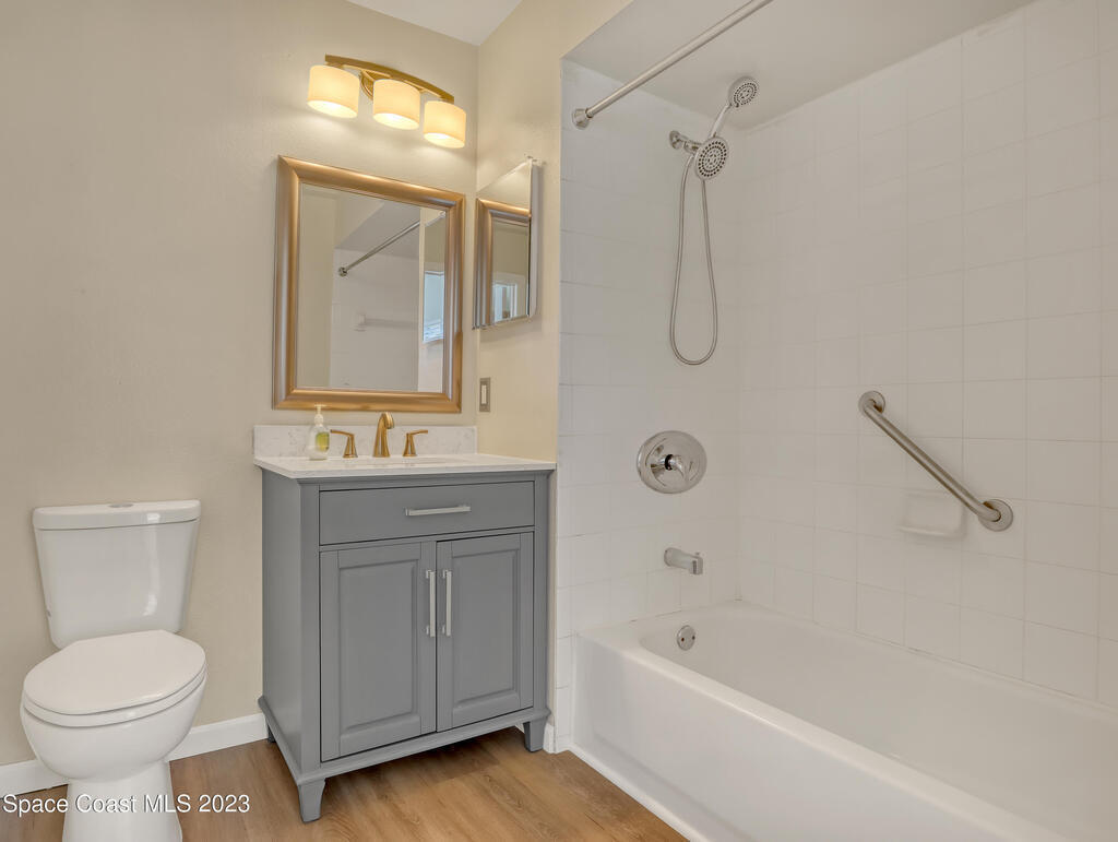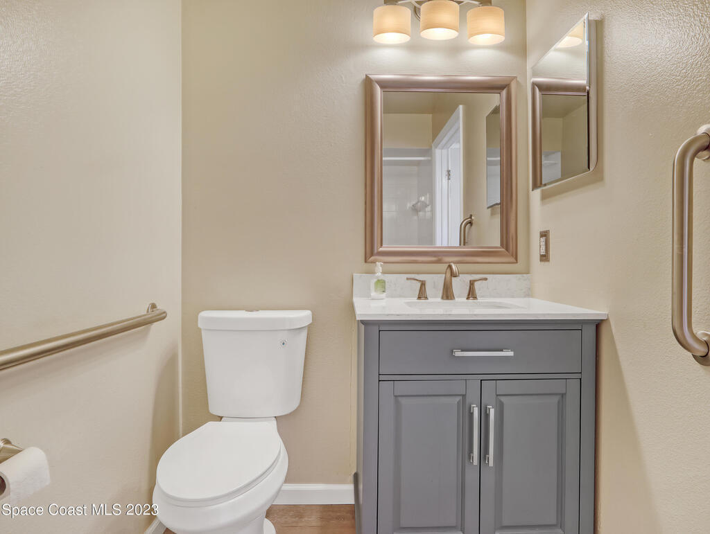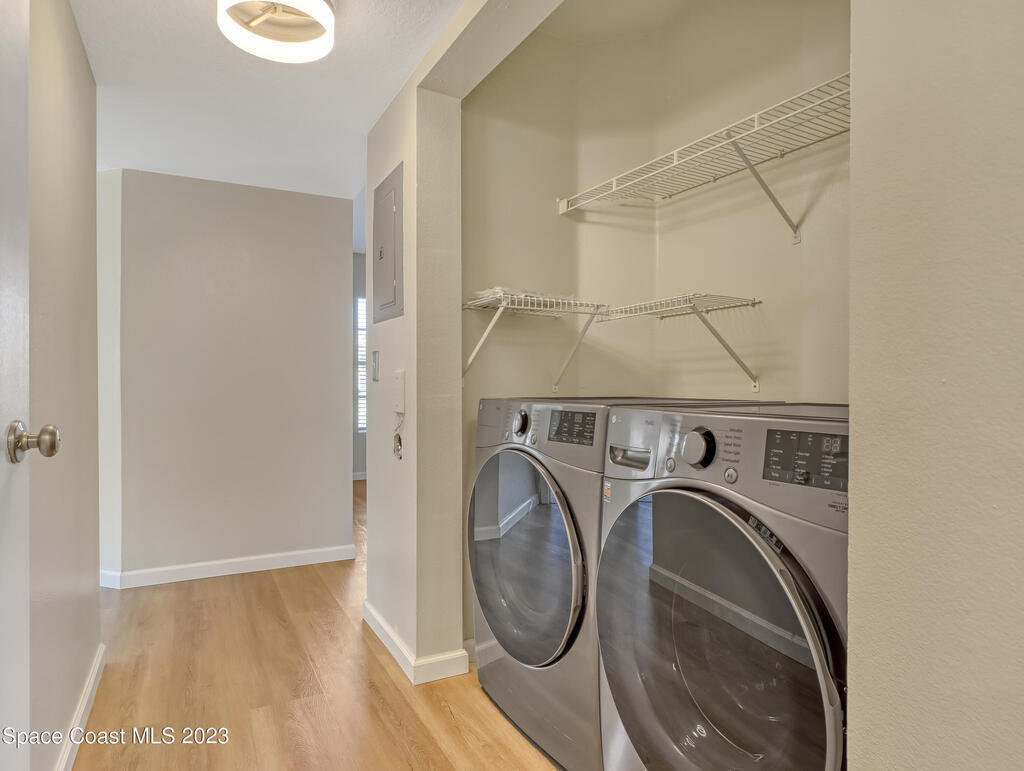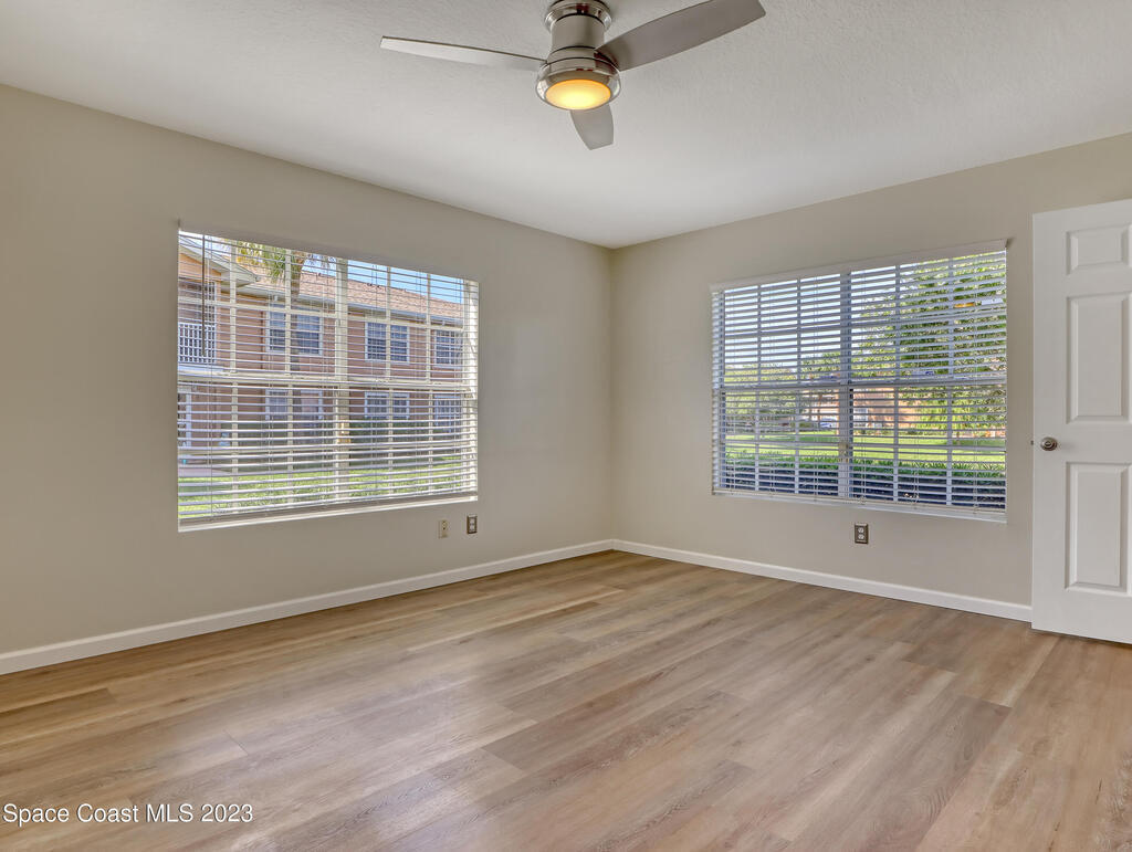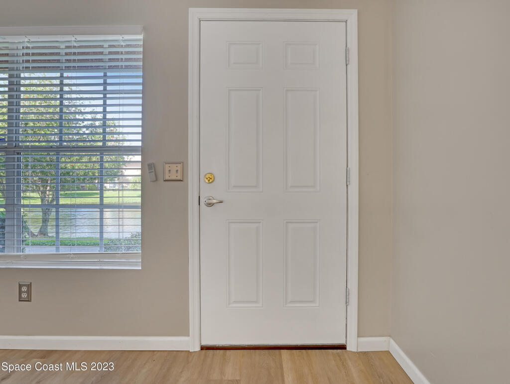 1st floor condo facing the lake!! Drop your bags move-in ready! COMPLETELY REMODELED 2022!!!! Replaced 10 screens, new kitchen cabinets from Lowes. Brand new quartz countertops, New kitchen sink, new kitchen appliances, new washer & dryer. All brand new doors: new front door, new storm door, new bedroom doors, new bathroom doors, new closet doors, 2 new vanities for each bathroom, Benjamin Moore painted professionally, Gorgeous new LVP flooring, All new trim work throughout. Updated light fixtures in bathrooms, all doors have new doorstops, All lighting throughout is new Allen Roth, Every electrical outlet cover brand new Allen Roth , All ceiling fans are new, Hallway lights are new. New shelving in closets. Close to the Viera Shopping and dining, 95, beaches, 45 min to Orlando.