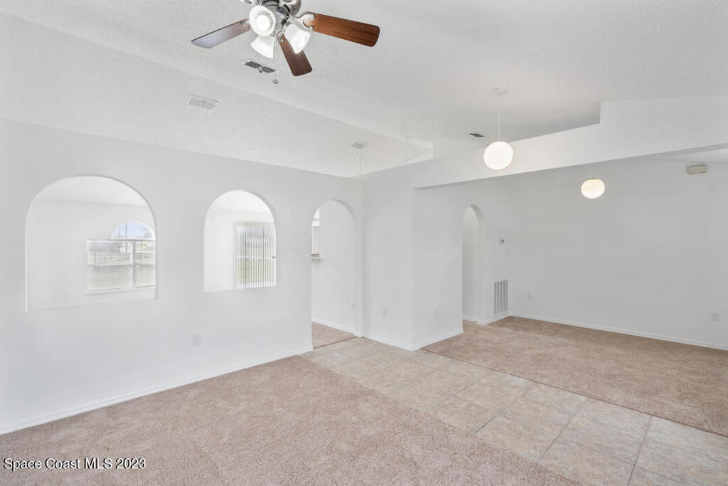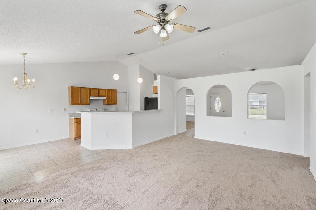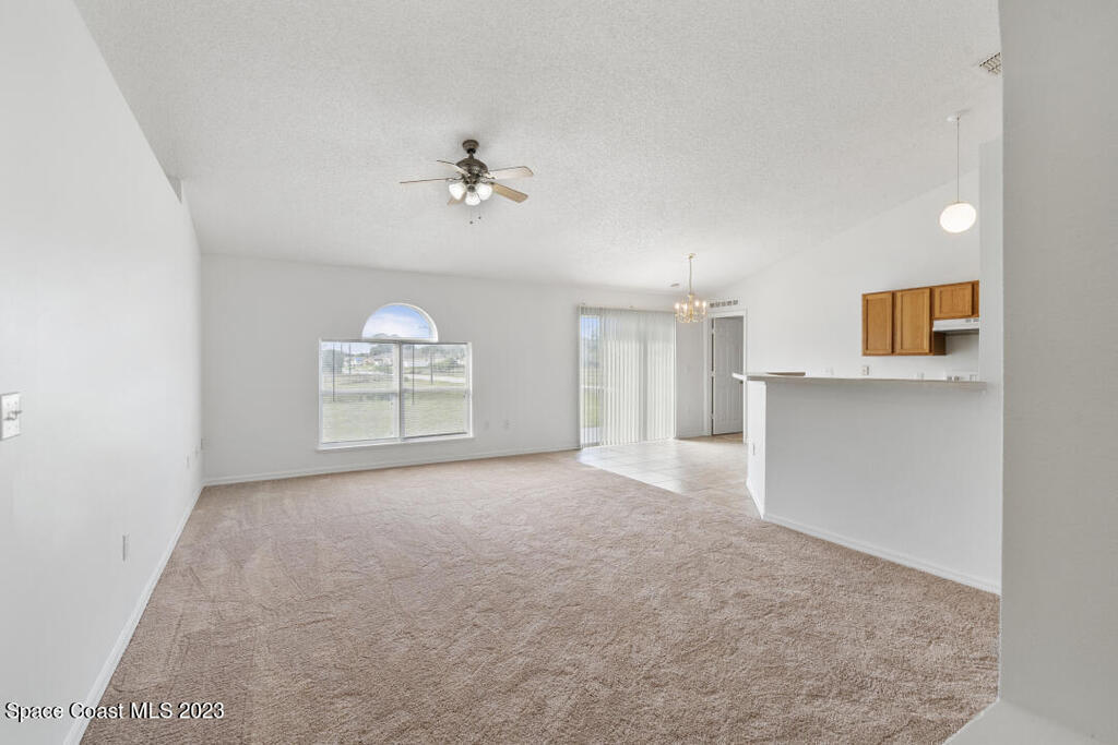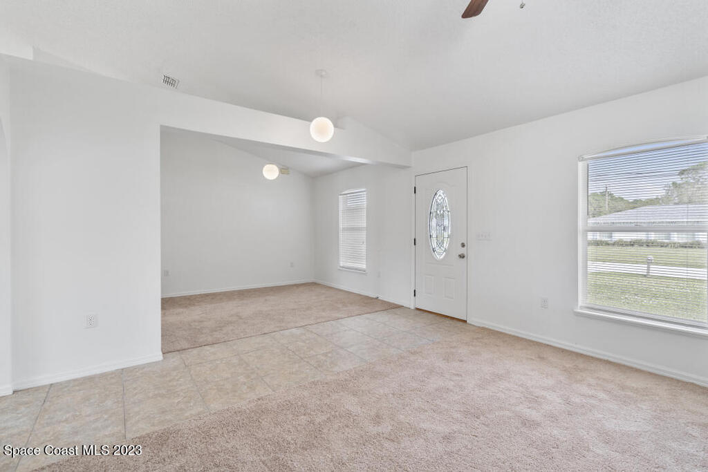 Beautiful 3 bedroom, 2 bathroom with high vaulted ceiling in living room on larger than average corner lot. Plenty of outdoor space for planting, privacy, and enjoying laid back Florida lifestyle. Brand new roof installed in Oct 2023 (no worries for decades). Brand new carpet and paint interior/exterior installed Oct 2023, ready for your enjoyment. New AC 2021, New water heater 2020. Short 25 min drive to Atlantic Ocean Beach and 1 hour to Orlando Airport