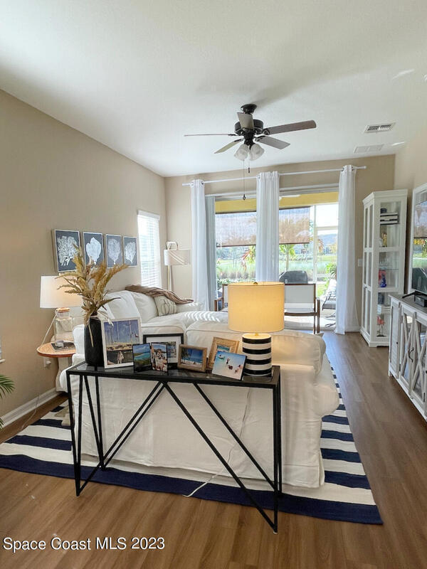 JACKPOT!! Resort style, 55+ Heritage Isle stunning END-UNIT, with serene WATER VIEW. This 2-bed, 2-bath residence with a versatile FLEX ROOM greets you with a bright and airy living space, thanks to the add'l natural light that only an end unit can offer. Featuring stylish plank flooring, spacious open-plan design, the kitchen is equipped with granite countertops, SS appliances, refined cabinetry and a pantry.The master suite has a large walk-in closet, providing ample storage space. The master bath includes dual sinks and large walk-in shower.Step outside to the screened porch and enjoy the tranquil water view, a perfect backdrop for your morning coffee or evening relaxation. Washer and dryer included and storm panels neatly stored in the 1-car garage.Heritage Isle offers a