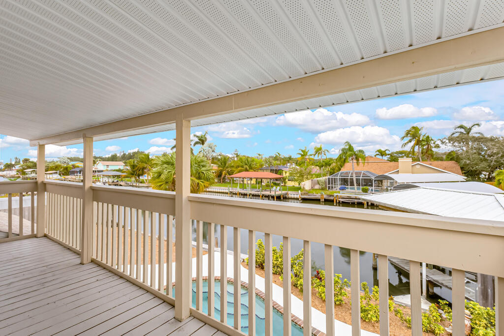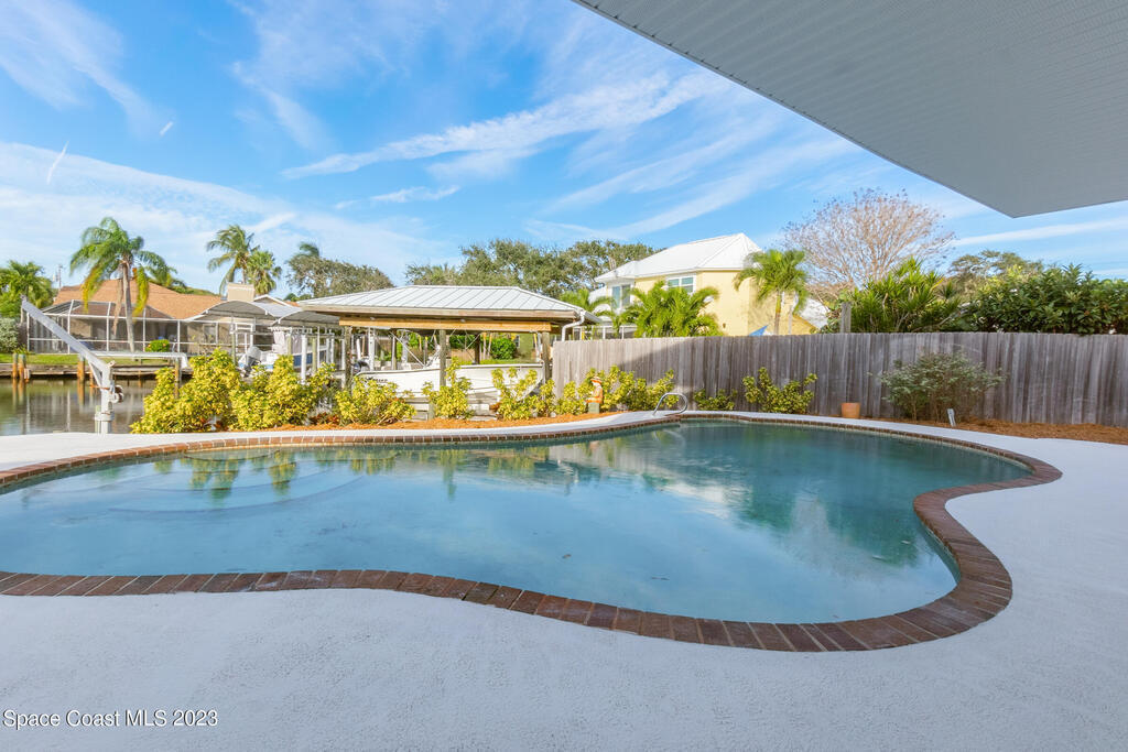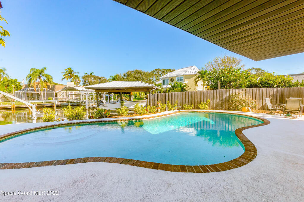 WATERFRONT @ Sunnyland Beach! BRAND NEW ROOF 11/23 & 6K soffits., & 2 New A/C units April 2, plus 3 totally brand new renovated bathrooms! A spectacular 4 bedroom, 3 bath home offers an amazing view of the canal leading straight to the Indian River! The living /dining room is a perfect flow from the pool around to the kitchen that is loaded with rich cabinets/granite, new backsplash & new granite kitchen & bar area & new paint. The split plan features a dbl. guest room with private bath. Real hardwood floors, too! The master suite upstairs features a gorgeous view of the canal from the deck, large bath enclosed shower, double sinks, & room for furniture pieces! The charming outdoor area has plenty of spots for entertaining, barbeques and watching dolphin & manatees! Grab a seat and enjoy the gorgeous sunsets relaxing in your backyard! Public beaches, Sebastian Inlet, A+ schools, ad golf all nearby!