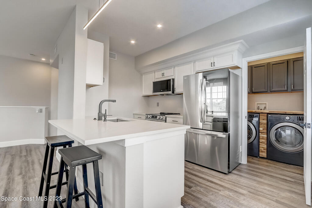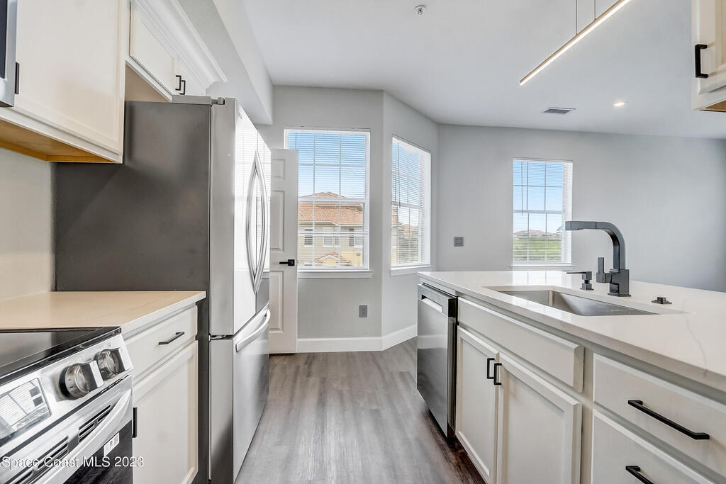 Completely Renovated Modern Condo - 3 Bedrooms 2 Bath in the Lakes at Viera East! Corner unit, top floor, second story condo with a beautiful view of the lake and the community pool! Brand new Kitchen Cabinets and Countertops, smart LG WIFI appliances, beautiful LVP Flooring with tall baseboards, and both bathrooms remodeled to name just a few of the renovations. See attached document for the complete list of the upgrades and renovations. Enjoy Florida living today in this move-in ready gated resort style community which includes a fitness center, free RV / boat storage, community heated pool, putting green, BBQ grills and a clubhouse! Very close to the Avenue at Viera as well as the new Whole Foods shopping center being built. Close proximity to 95, beaches, and the Orlando Airport!