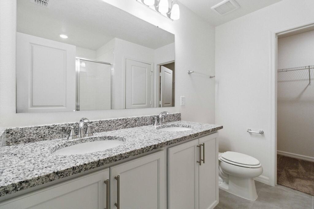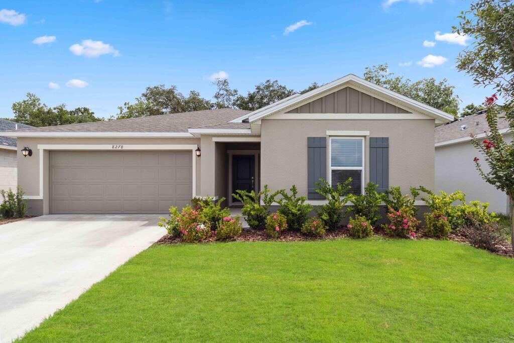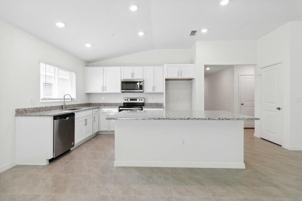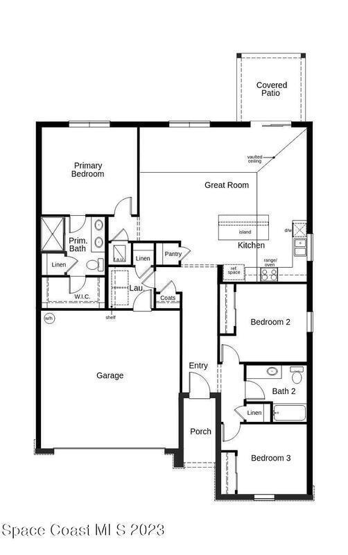 Welcome to this beautiful home with upgraded tile flooring, volume ceilings, and a covered patio perfect for enjoying theoutdoors. Right of the entry way, there are two bedrooms, a linen closet, and a full bath. Across the hall, there is a dedicated laundry room witha linen closet. The entry way opens to an open kitchen overlooking an inviting great room. The kitchen showcases 36-in. upper cabinets incotton with brushed nickel hardware, granite countertops, an island, and stainless-steel features including a Moen(r) faucet, a Kohler(r) sink, andWhirlpool(r) appliances. Adjacent to the great room, the primary bedroom boasts a walk-in closet and a primary bath with a linen closet, a dual-sink vanity, and a walk-in shower with tile surround.