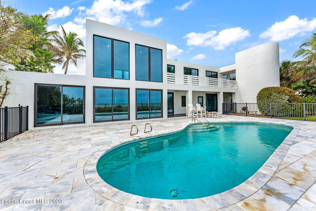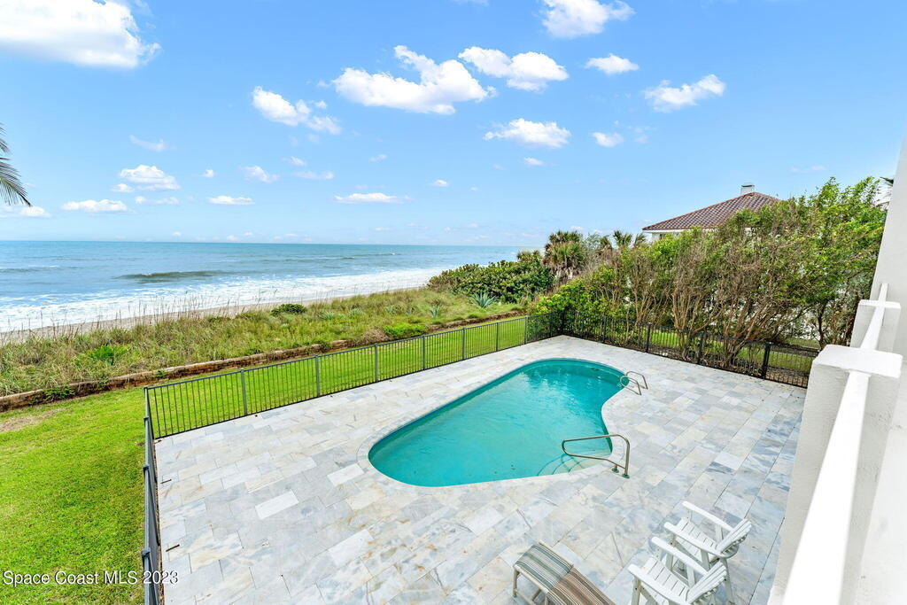 This stunning coastal contemporary house offers direct ocean frontage and breathtaking views of the Atlantic Ocean. Step inside this poured concrete structure and prepare to be amazed. The expansive new impact windows and sliders not only flood the home with natural light but also provide panoramic vistas of the sparkling blue waters. With three spacious bedrooms and 5 bathrooms, there is ample room. House was previously listed as a 5 bed house and could be returned to 5 beds. Imagine waking up each morning to the sound of crashing waves and sipping coffee on the private balcony overlooking the ocean and pool with tumbled marble deck. Seller has terminated renovations and a buyer will need to step in and make this house their own. Call now to schedule your private tour of 1655 Hwy A1A