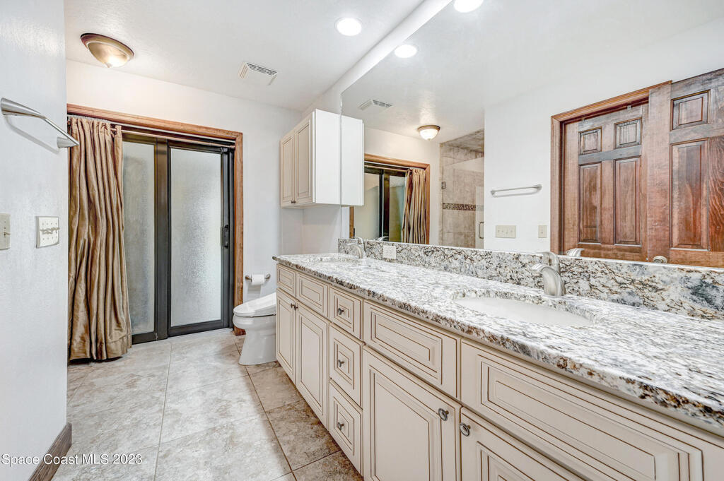 Welcome to the epitome of luxury living! This Lake Washington home in the prestigious Kingsmill Subdivision is a true masterpiece, quite possibly the largest gem in the neighborhood. Prepare to be awestruck by the impeccable design and custom upgrades that set this property apart. Step into the heart of the home, where a large granite bar top kitchen awaits, designed with entertaining in mind. The kitchen boasts newer stainless steel appliances including a convenient natural gas cooktop. The center of social gatherings, this space is perfect for creating lasting memories with friends and family. Throughout the home, large panel Plantation shutters adorn the windows, and newer impact windows and doors enhance both security and energy efficiency. The bathrooms are a testament to meticulous