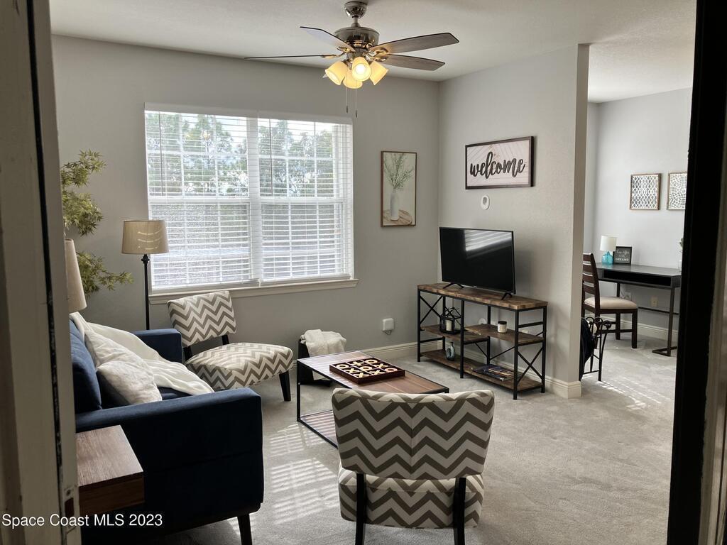 Enjoy this 1/1/1 in a gated resort-style community that offers an exceptional lifestyle. Step inside and discover a comfortable living space with ample natural light. The unit boasts a new tile roof (2021), and accordion storm shutters on all windows to ensure added security and protection. The property features a deep one-car garage and an additional storage unit, offering plenty of space. Indulge in the community's fantastic amenities, including a clubhouse & fitness center, free RV/boat storage, a heated pool perfect for relaxation, putting green for golf enthusiasts, and BBQ grills ideal for hosting gatherings. Located in close proximity to beautiful beaches, the Orlando airport and theme parks. Plus, watch SpaceX and NASA rocket launches! Don't miss out, own a piece of paradise.