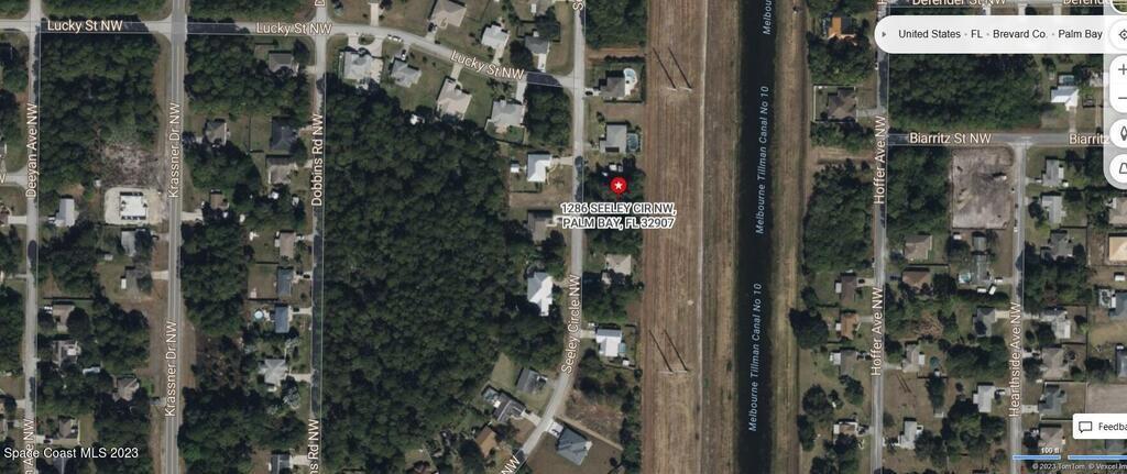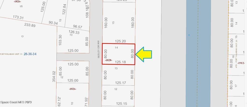 0.23 acre buildable residential lot available in Port Malabar Unit 39 of Palm Bay. Located in the northwest section, this lot has a drainage canal in the rear allowing more privacy, and is just 2.2 miles - 5 minutes to Heritage High School, 3 miles - 7 minutes to the Winn Dixie Supermarket, 14.5 miles - 26 minutes to Melbourne Airport, and 15.4 miles - 33 minutes to the beaches of Indialantic. From exit #180 of I-95, go west on US-192 for .5 miles, left on St Johns Heritage Parkway for 6.1 miles, left on Malabar Road for 1.3 miles, left on Krassner Drive for .1 mile, and right on Seeley Circle. The lot will be on your right.
