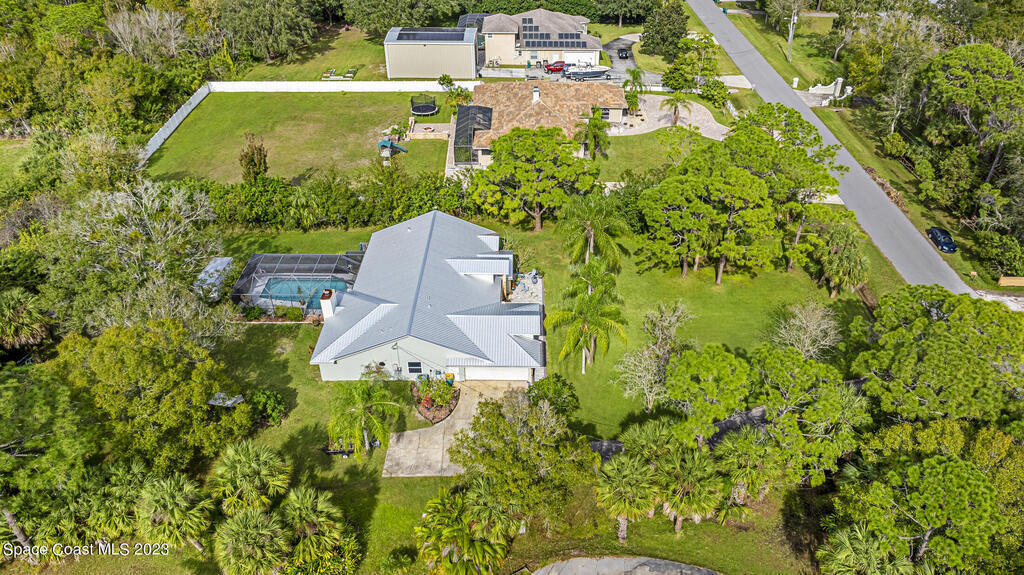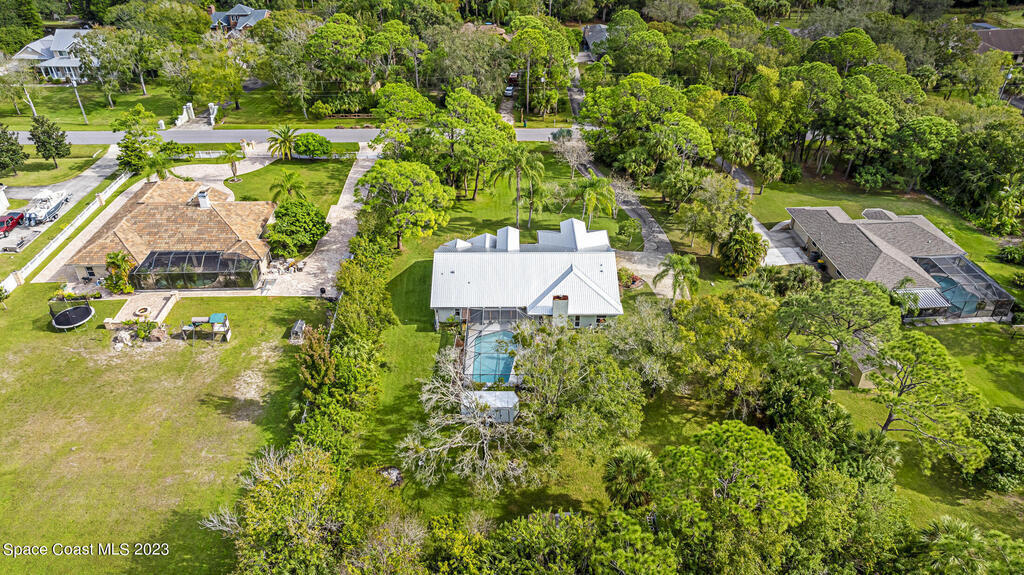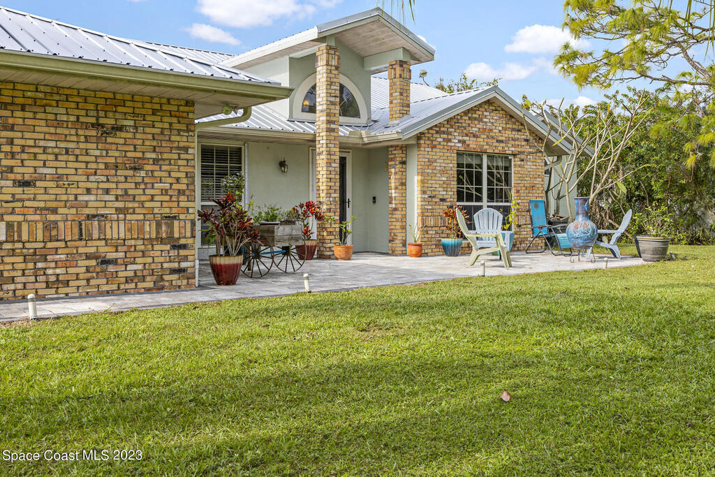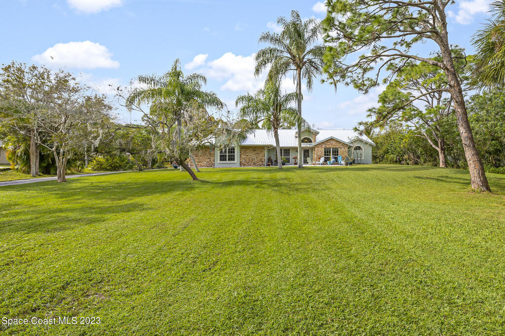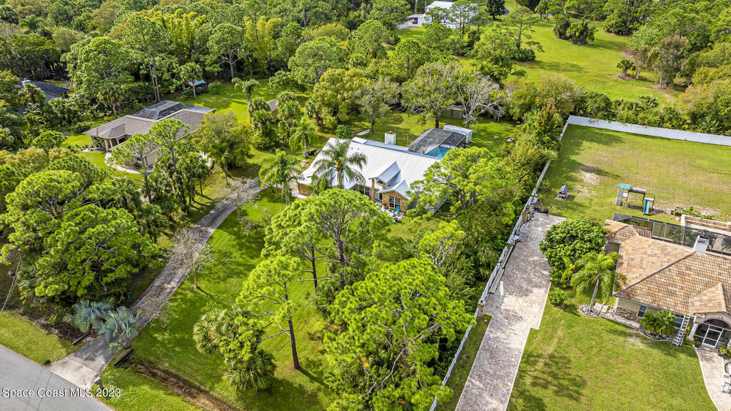 Motivated Seller! Paint Credit Available with Accepted Contract. NEW 2023 Metal Roof, Plumbing AND Water Heater! Location and Land! If that's what you seek, this hidden gem is for you! Tucked away on a peaceful cul-de-sac in a quiet neighborhood off Turtle Mound, this home has a 4/2 split pan and offers a comfortable space to entertain family and friends. Cozy up with the warmth coming from your fireplace on a cool night, and enjoy a refreshing dip in the pool on a hot day. The NEW paver patio up front offers another great space to relax while enjoying the peaceful sounds of nature and the neighbors horses, goats and roosters. You'll likely forget how centrally located you are - just 15 minutes to the beach, Viera, and the Hammock Landing in Palm Bay! This home sits on an attractive one acre lot with plenty of trees. Ample space for your boat or RV!