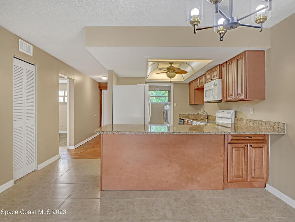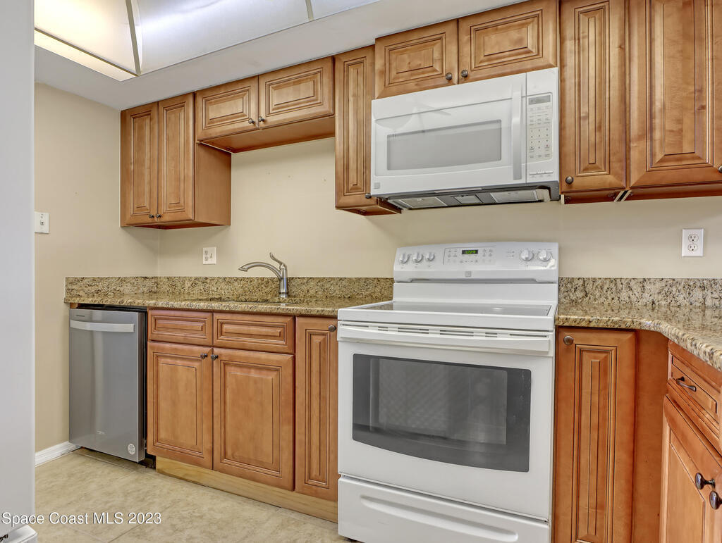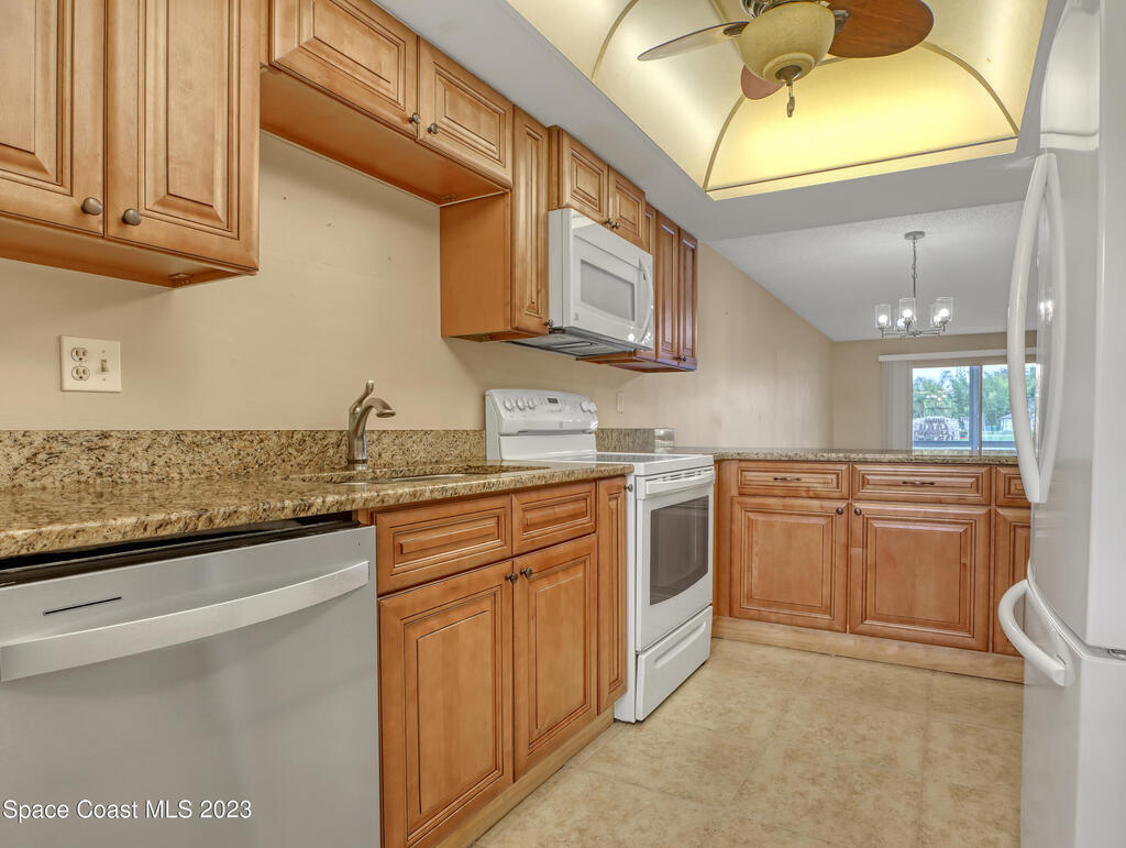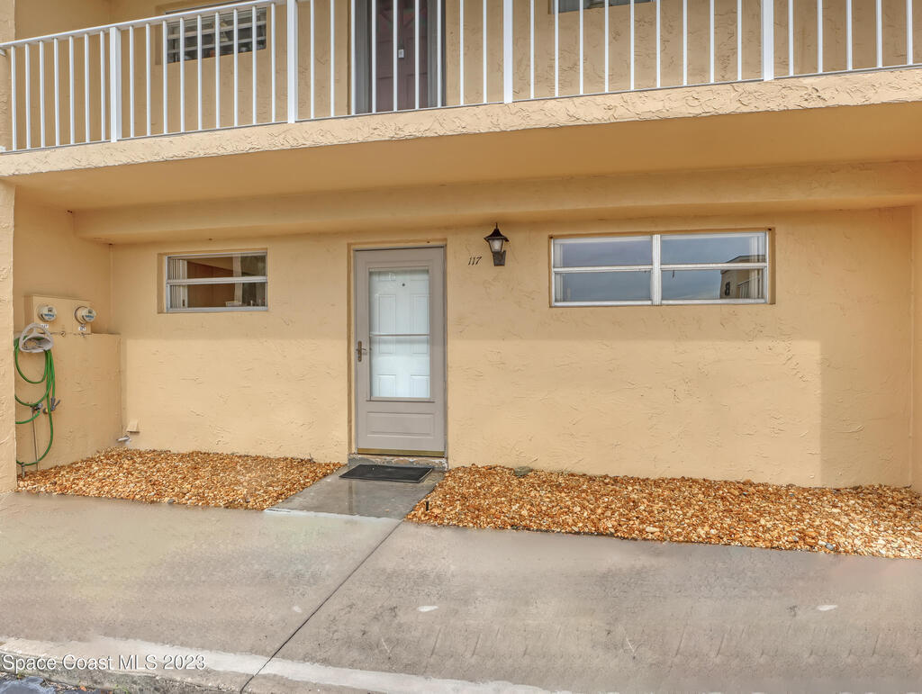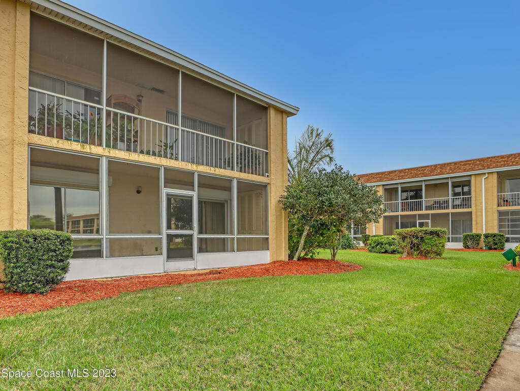 Located centrally in Merritt Island, this ground floor condo is ready for a new owner! This is a 3 bedroom/2 bathroom condo with beautiful back porch views! The kitchen and bathroom have been updated with new cabinets and granite countertops. The dishwasher is new as of 2023. HVAC replaced 2023. Water heater was replaced in 2022. Hurricane shutters for added protection. There is fenced RV and boat storage available on location.