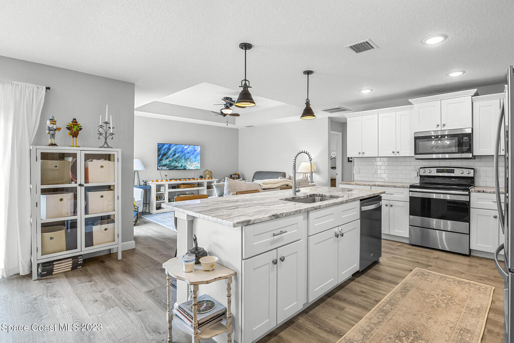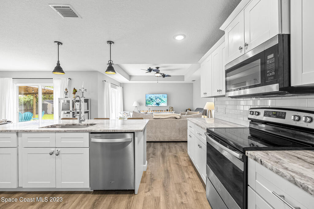 Beautiful 3 bedroom 2 bath Centrally located, feature packed home on over-sized .34 acre lot in the heart of Rockledge. With a Stunning Kitchen this home has all the upgrades your looking for Hurricane Windows, Upgraded R value insulation to keep energy bills down, Metal accented roof, High efficiency HVAC unit, granite counters, huge master shower and Custom tray ceilings in the great room and master. Large fenced yard with ample room for a boat or an RV. Furnishings can be negotiated. Fine Florida Living Awaits!!