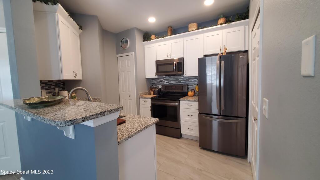 This beautiful unit has been completely redone right down to the studs!! Blown in insulation, gorgeous tile floors throughout, new A/C, stainless appliances,granite kitchen with mosaic backsplash!!! New roof in 2021, storage unit, and an extra office space off the living room! Move in GORGEOUS! No one above you so it is peaceful and quiet all the time! Hurry to see this immaculate home!