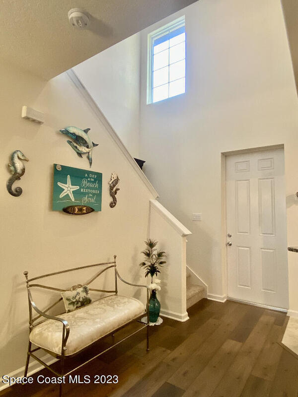 Beautiful two story townhouse completed in 2021 in highly desirable Montecito. Open floor plan with kitchen, living and dining room plus Master Bedroom and Bath on first floor. Guest bathroom. Huge loft area plus two bedrooms and one full bath upstairs. Three walk-in closets plus additional storage throughout. Two car garage. Walk to the beach in minutes! Amenities include Million Dollar beach clubhouse with fitness room and meeting area, pool, and playground.Home faces north with spectacular launch views. Close to Banana River recreational activities and dolphin viewing. Forty- five minute drive to Orlando International and 20 minute drive to Melborne Airport. Ten minutes to Patrick Space Force Base.