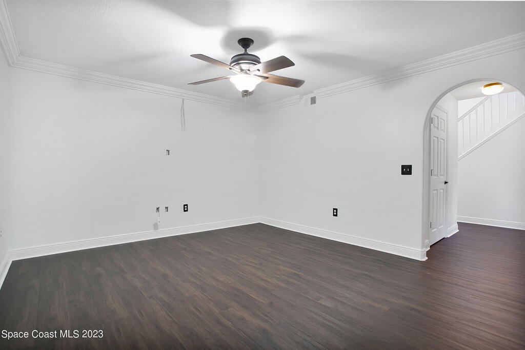 **Coming Soon: Upgrades including mailbox replacement, landscaping, porch rescreening, stucco repair, interior and exterior painting, siding repair, new range, new powder room toilet, HVAC servicing and much more.** Step into this 4 bed, 2.5 bath home in the Palmwood community of Melbourne. While its exterior is modest, the interior of this 2252 sqft house reveals a range of attractive features. It boasts wood laminate flooring throughout for a sleek and easy-to-maintain look. The kitchen is a highlight with its modern appliances and solid surface countertops, offering both style and functionality. The home is thoughtfully laid out, featuring distinct spaces on the first floor that include a family room, living room, and dining room, ideal for various activities and gatherings. Upstairs,