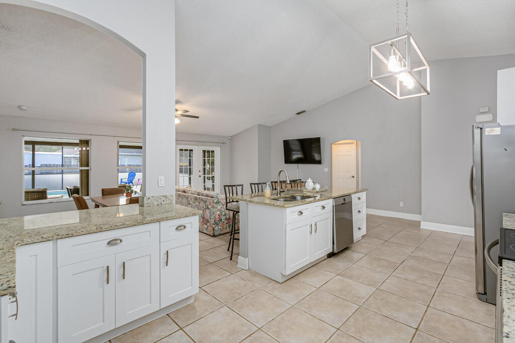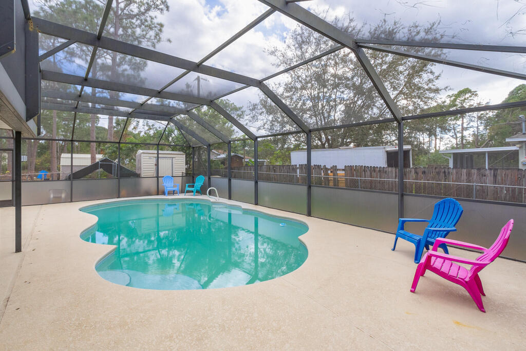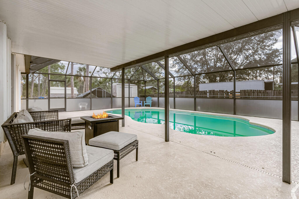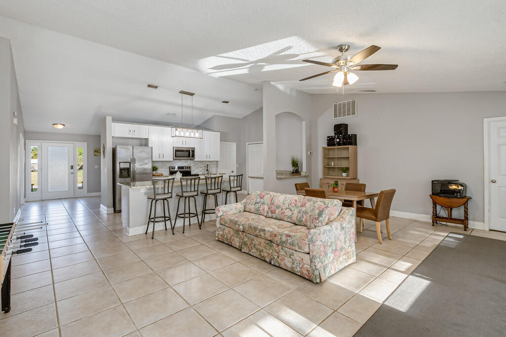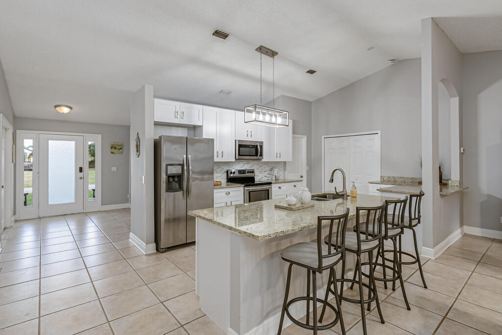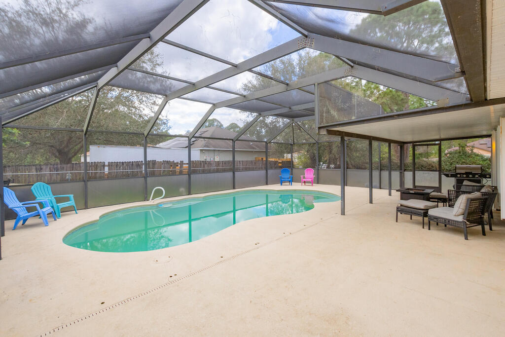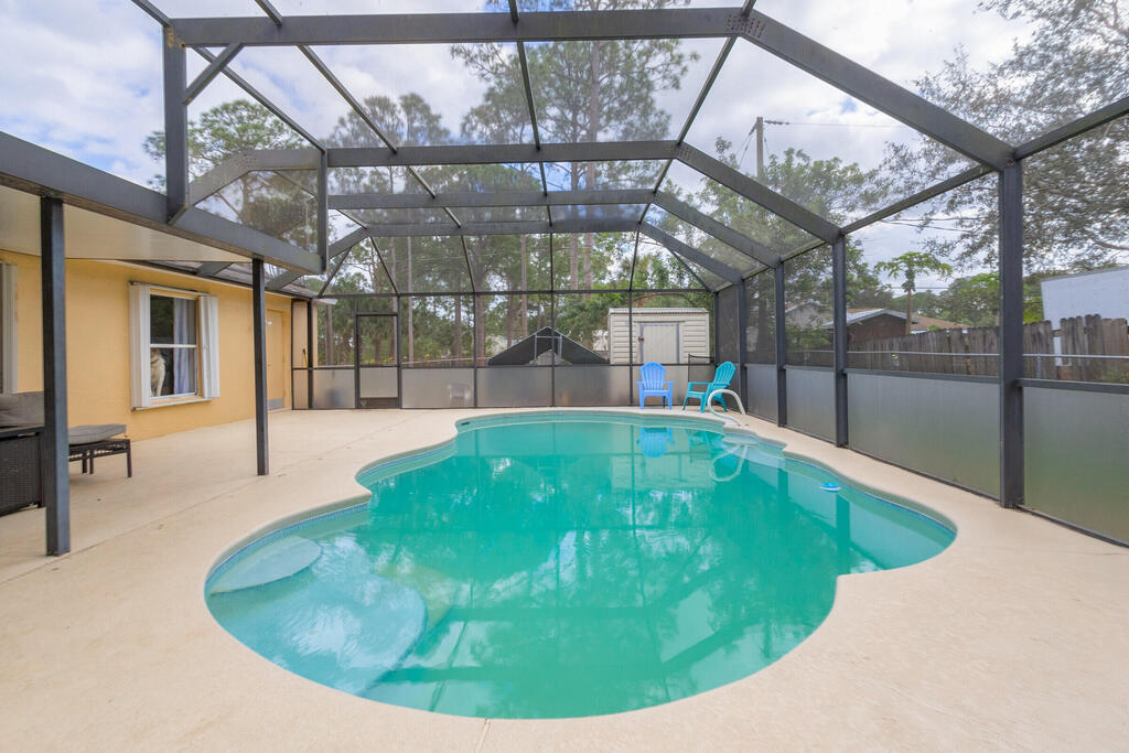 This spacious four-bedroom, two-bath residence, nestled on nearly half an acre, boasts a plethora of desirable features. The interior highlights include a flexible room, an open floor plan with tiled flooring, and accordion hurricane shutters securing all doors and windows. The kitchen is a culinary delight, equipped with both 42-inch cabinets and contemporary stainless steel appliances. Granite countertops and an expansive island add a touch of luxury to this inviting space.One of the home's standout features is the screened-in inground pool, providing a refreshing oasis for relaxation. The patio, generously sized, offers ample space for entertaining, making it the perfect setting for gatherings and outdoor enjoyment. This property harmoniously combines practicality with leisure.