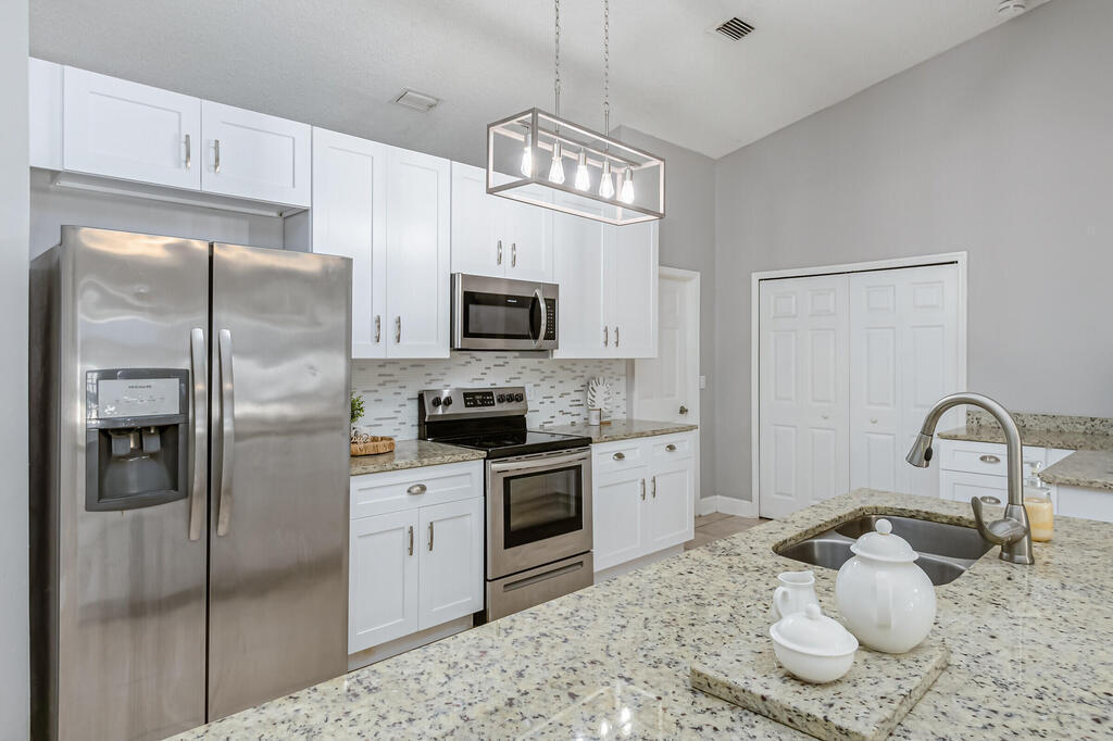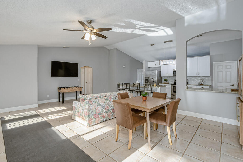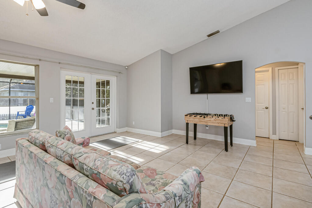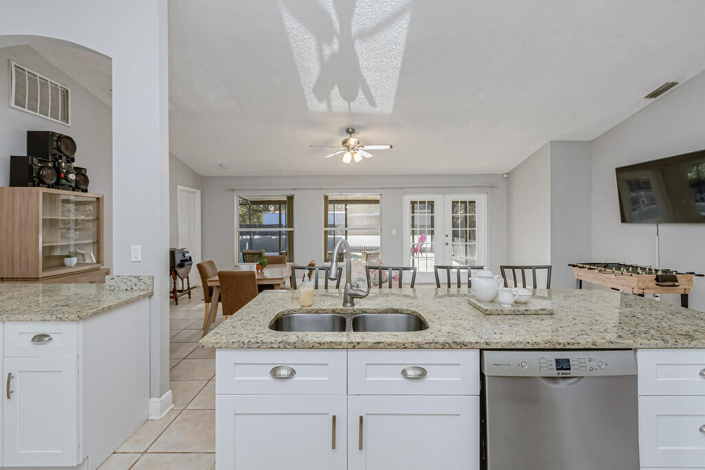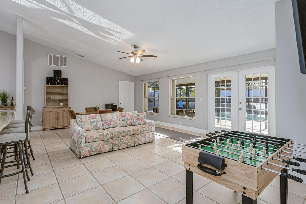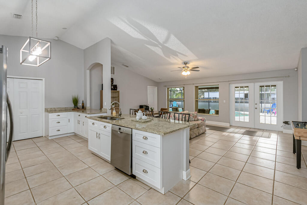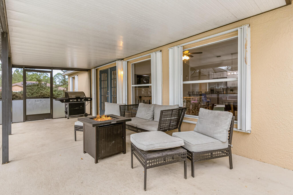 This spacious four-bedroom, two-bath residence, nestled on nearly half an acre, boasts a plethora of desirable features. The interior highlights include a flexible room, an open floor plan with tiled flooring, and accordion hurricane shutters securing all doors and windows. The kitchen is a culinary delight, equipped with both 42-inch cabinets and contemporary stainless steel appliances. Granite countertops and an expansive island add a touch of luxury to this inviting space.One of the home's standout features is the screened-in inground pool, providing a refreshing oasis for relaxation. The patio, generously sized, offers ample space for entertaining, making it the perfect setting for gatherings and outdoor enjoyment. This property harmoniously combines practicality with leisure.