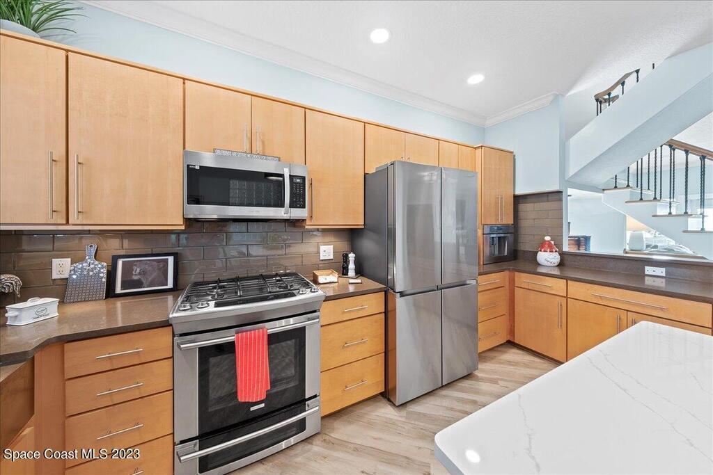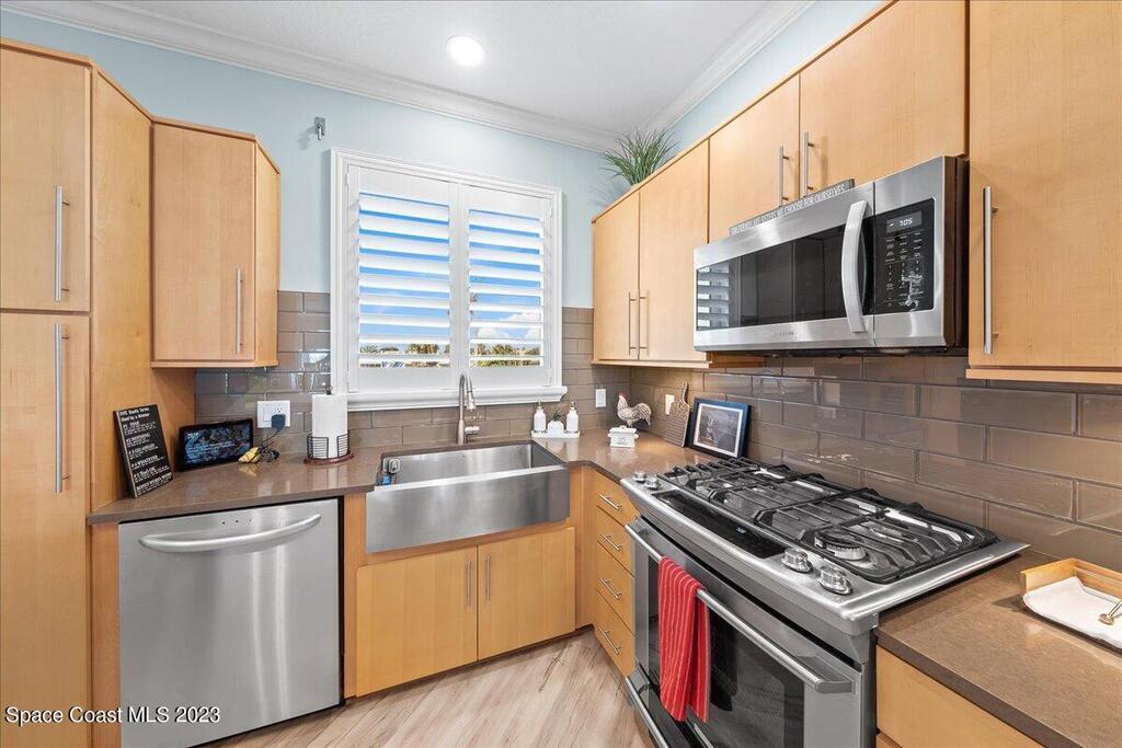 This stunning well maintained oceanfront townhomes boasts 4 BD 3.5 BA and a rare 2 car garage. Balconies on 2nd & 3rd floors with a pavered patio off 1st floor all with oceanviews. Upon entering the unit you are greeted by the ocean. Open floorplan, gourmet kitchen with SS appliances, brand new quartz kitchen island with seating for 6. Gas cooktop for the chef in the house. Top floor features the primary and two additional secondary bedrooms. Spa like primary bath leads to custom WIC. First floor great entertaining space with access to the back, full bath and laundry room. Roof 18', HVAC (both condensers) 23', Ext Paint and Porches 22', Int Paint 20', Flooring 20', Pavered Rear Patio 22'. Great location, beach walk over just to the south which is owned & maintained by the County.