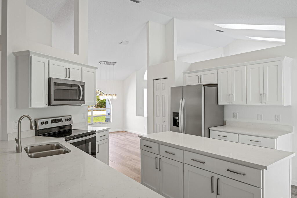4 Bed, 2 bath, 2 car garage split floor plan w/ open kitchen, formal dining/living/family rooms, indoor laundry room, breakfast bar, enclosed florida room rear patio, large walk in coset in master, double master sinks, private back yard overlooking water. Home just went under an extensive remodel including a new roof, appliances, kitchen/bath cabinets/counterops, floor tile, carpet, paint and lighting/plumbing fixtures.