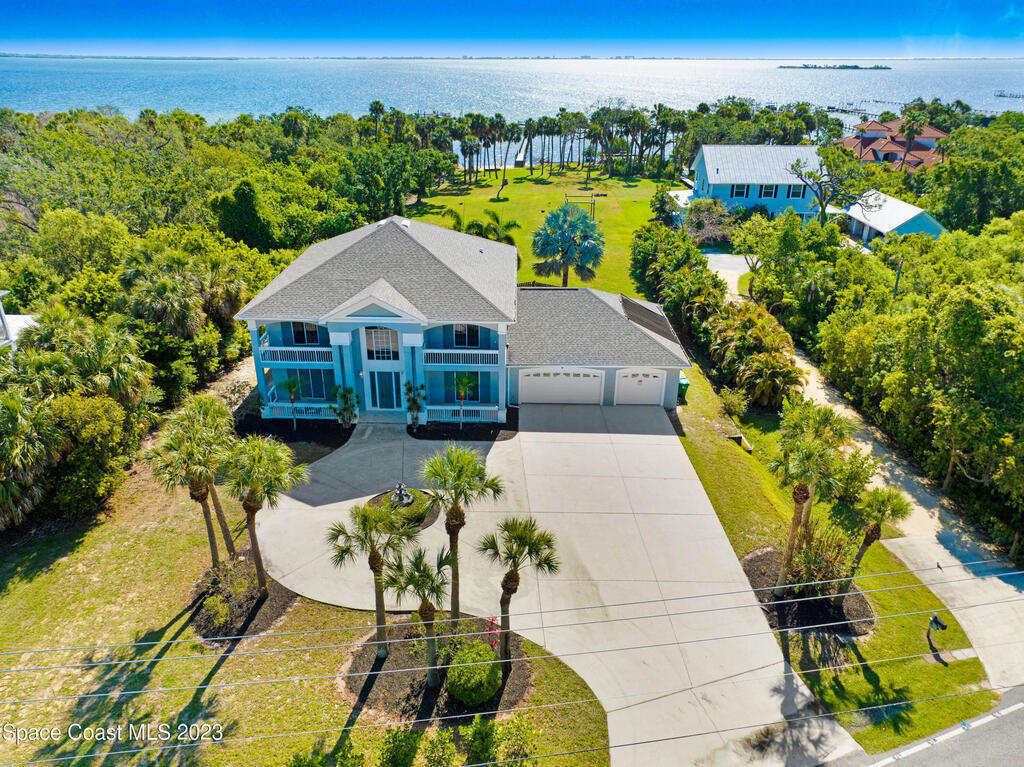 MAKE OFFER!- Great opportunity to own this Waterfront Estate! Situated on a 1.38 acre lot with over 3,500 sq.ft. of living space! Enjoy gorgeous sunrise views, a long dock-great for fishing, a firepit, and plenty of space for all your riverfront activities. This 2-story POOL home features 4 bedrooms PLUS PRIVATE SUITE, 4 baths and 3-Car Garage with ample parking space. Living/Dining Room, Family Room and Bedroom/Office on the first floor. The Primary Bedroom includes a dressing area, fireplace & balcony on the 2nd floor plus 2 other bathrooms & bathroom. Private suite downstairs w/full bath & living area. Roof 2018. Fantastic location between the 520 and Pineda causeways. Just a few minutes to the beach. Schedule your showing today!!