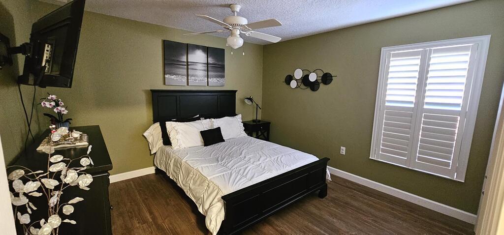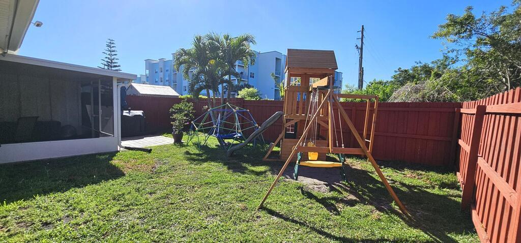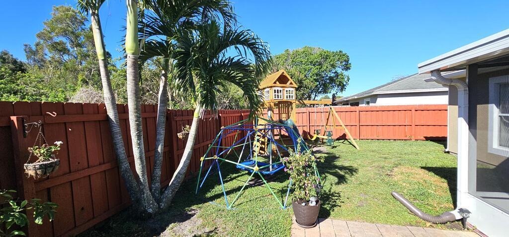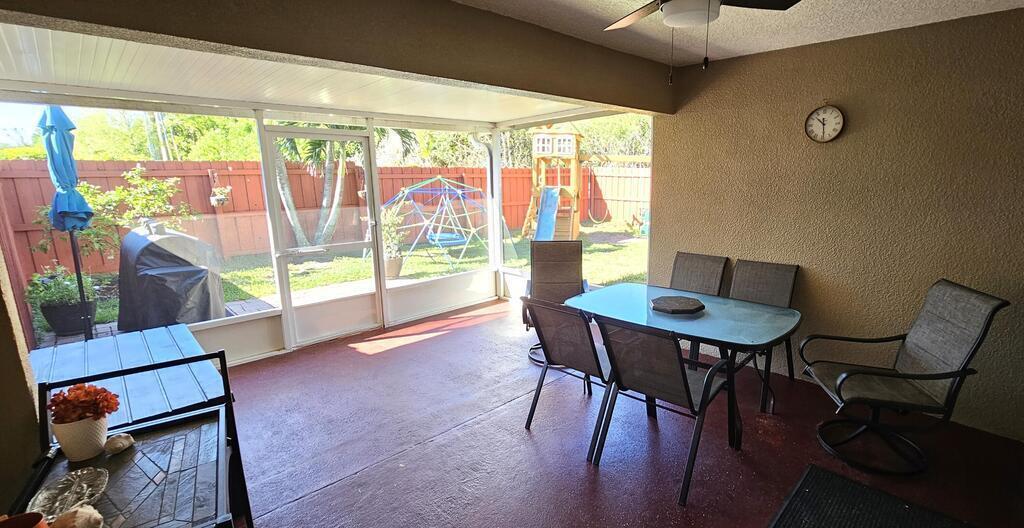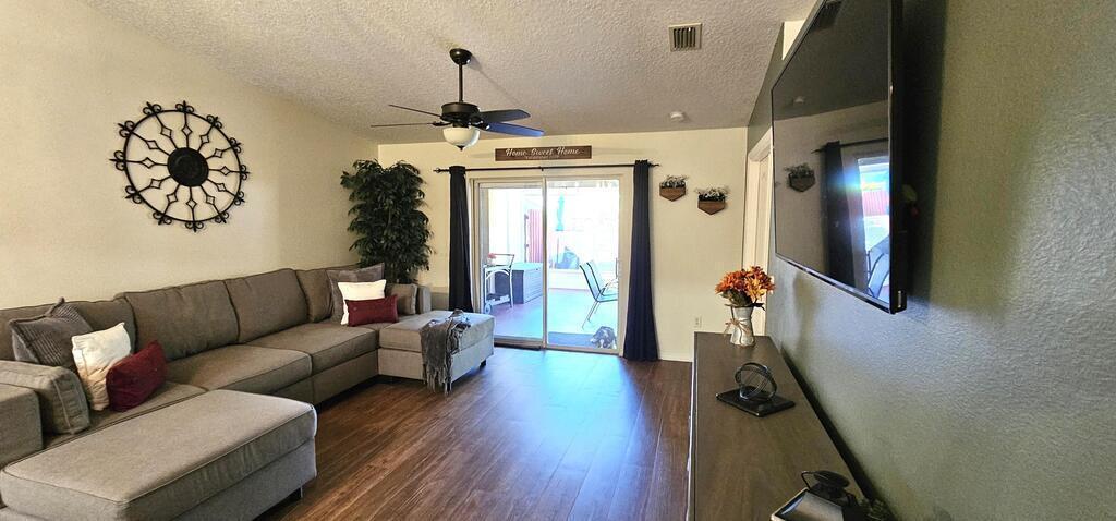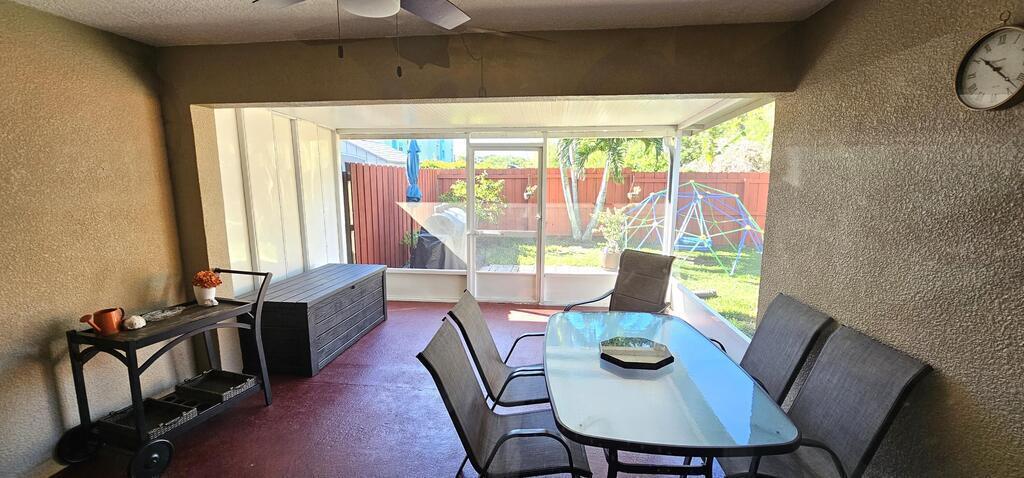 PRICE REDUCTION! Upgrades galore! Discover this stunning, spacious half duplex in a sought-after location with no HOA fees! Featuring 3 bedrooms, 2 bathrooms, and a 1-car garage, this home offers an open floor plan with elegant upgrades throughout, including plantation shutters, Pergo flooring, modern lighting, and updated appliances. The generous kitchen, perfect for meal prep, overlooks the dining and living areas, ideal for hosting guests on the expansive screened patio and in the secluded, fenced backyard. The split floor plan ensures privacy, leading into the master suite via stylish French doors, boasting a large walk-in closet, dual vanities, and a sizeable glass-enclosed shower with a separate toilet. Two additional bedrooms share the second bathroom, all conveniently located near shopping, schools, beaches, and entertainment.