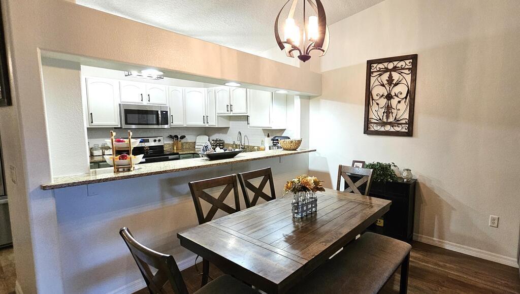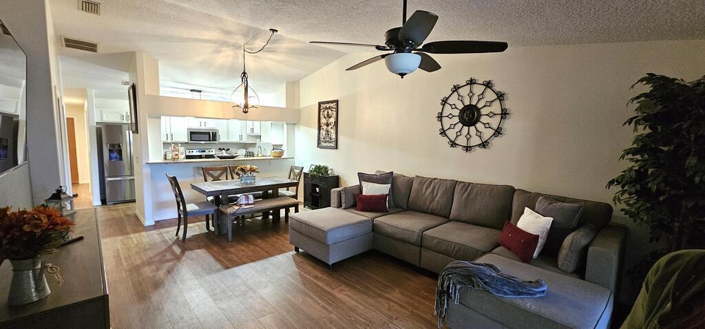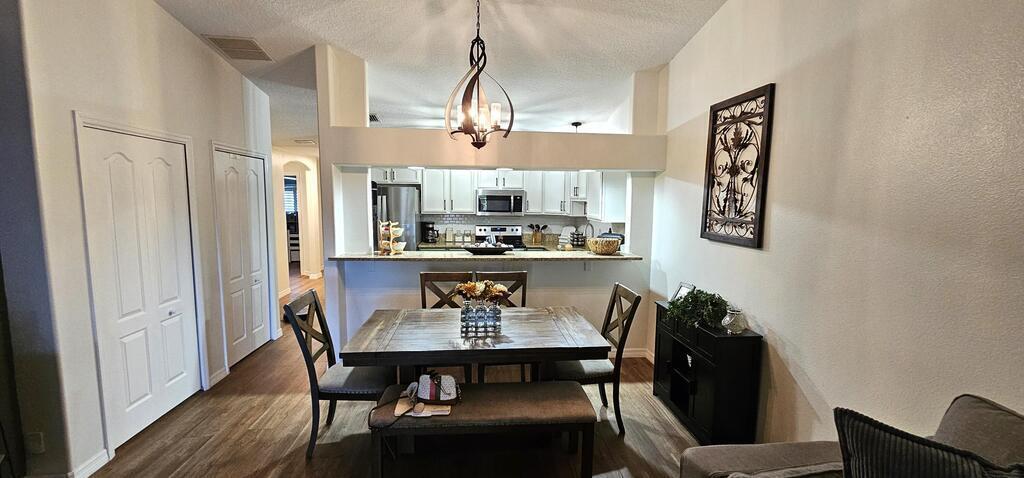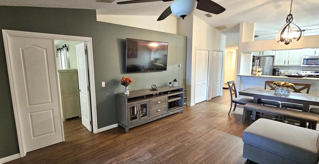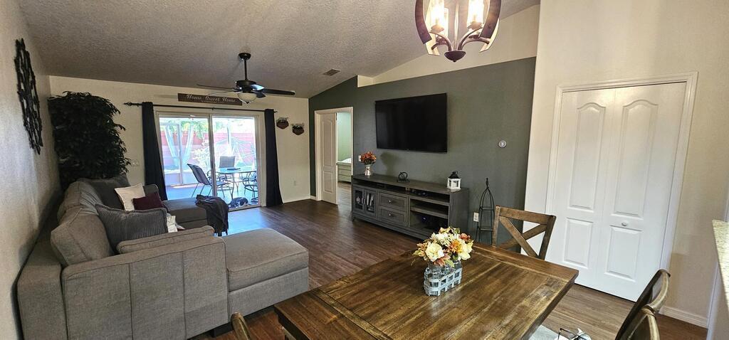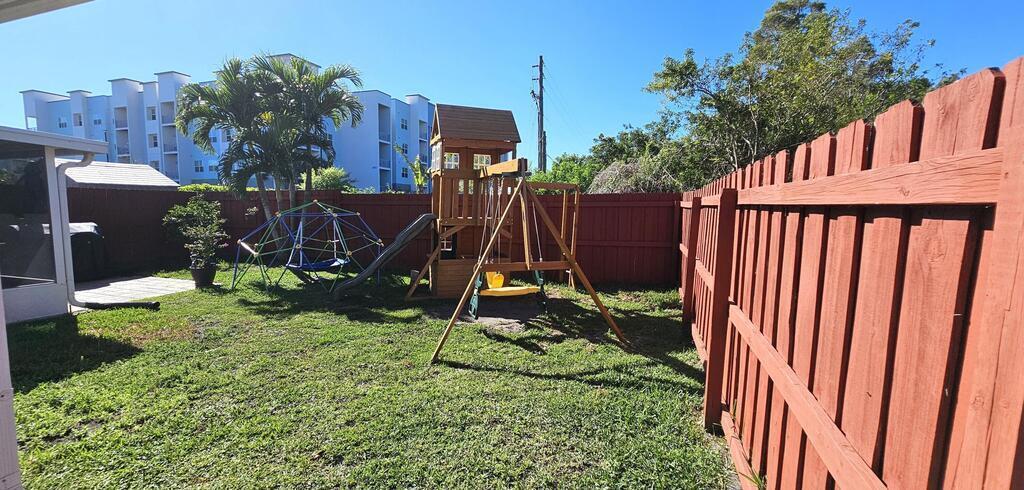 PRICE REDUCTION! Upgrades galore! Discover this stunning, spacious half duplex in a sought-after location with no HOA fees! Featuring 3 bedrooms, 2 bathrooms, and a 1-car garage, this home offers an open floor plan with elegant upgrades throughout, including plantation shutters, Pergo flooring, modern lighting, and updated appliances. The generous kitchen, perfect for meal prep, overlooks the dining and living areas, ideal for hosting guests on the expansive screened patio and in the secluded, fenced backyard. The split floor plan ensures privacy, leading into the master suite via stylish French doors, boasting a large walk-in closet, dual vanities, and a sizeable glass-enclosed shower with a separate toilet. Two additional bedrooms share the second bathroom, all conveniently located near shopping, schools, beaches, and entertainment.