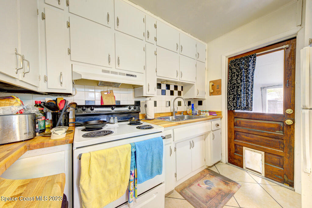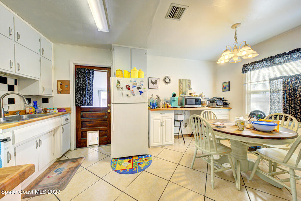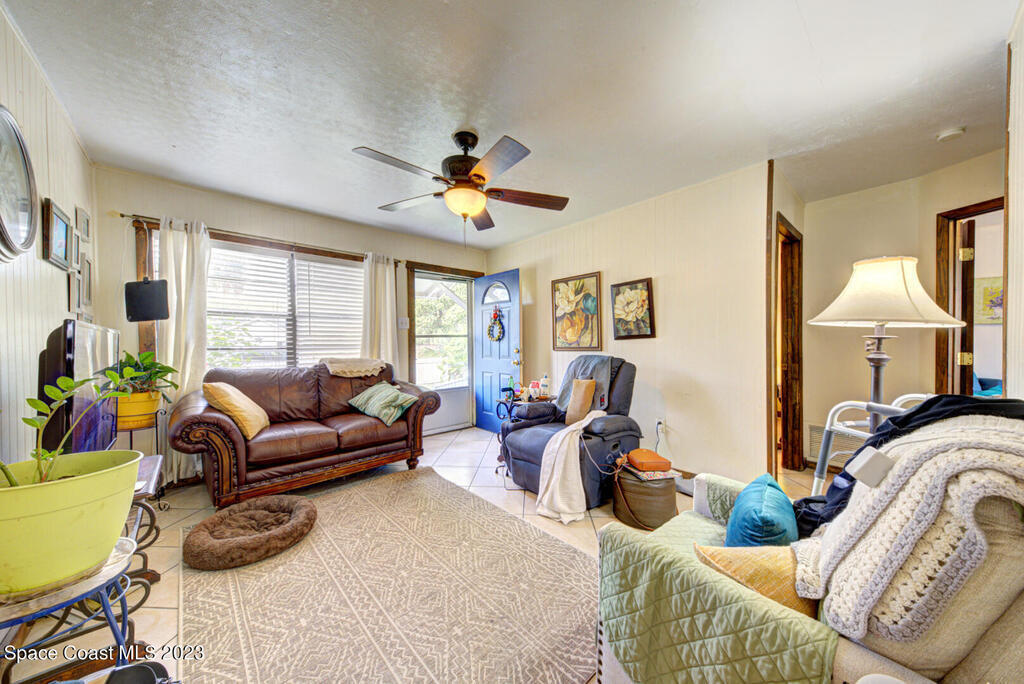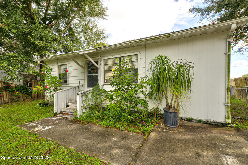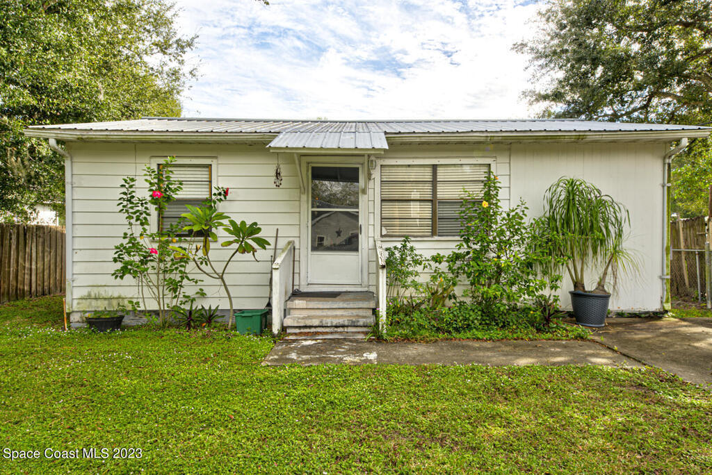 Charming Wood Frame Cottage, Built in 1958 with 3 Bedroom, 1 Full Bathroom, 768 sqft under air / 900 sqft under roof & Metal Roof located in Mims. This home features living room, eat-in kitchen with white wooden cabinets & butcher block countertop, tile flooring throughout (no carpet), ceiling fans, central A/C, full bath features single vanity and walk-in shower, washer & dryer hookups on enclosed porch, completely fenced in back yard, concrete driveway, home is on city water & septic tank. There is no HOA and no restrictions to park trailer, boat or RV. This home is worth looking at...