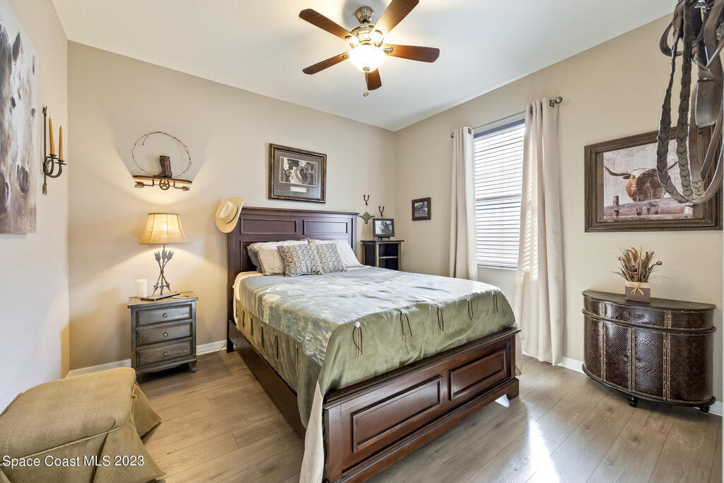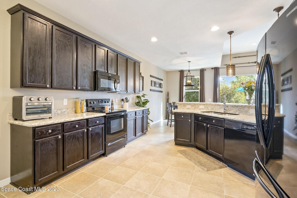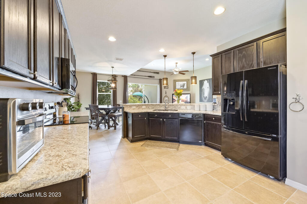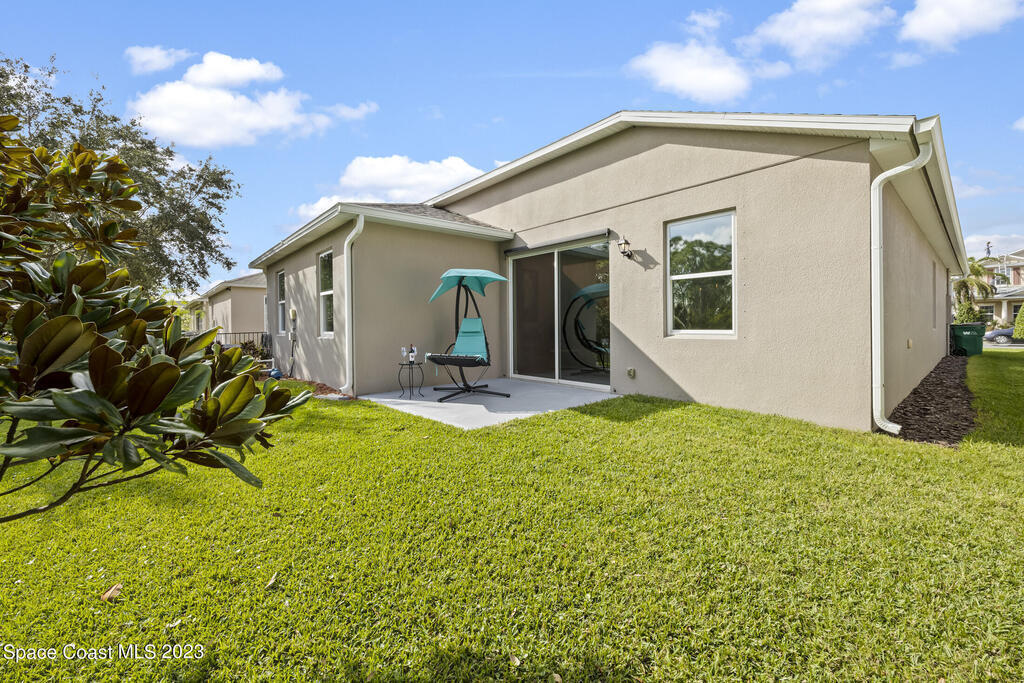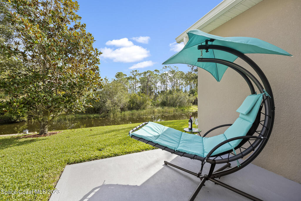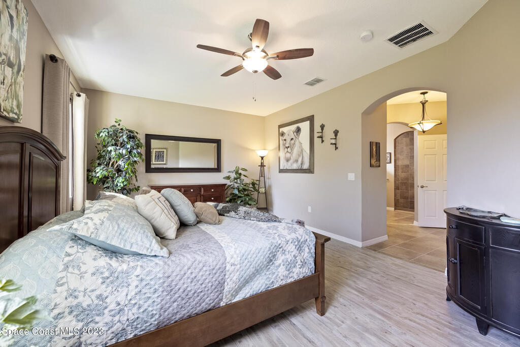 Welcome to your dream home!! This gem is in the highly sought after Manchester Lakes Community. This 3 bedroom 2 bathroom home exudes sophistication with it's 42'' espresso wood cabinets, and it's beautiful lighting fixtures, and 10' ceilings throughout the home. The open floor plan with 12' ceilings in the great room, and is accented by 8' handcrafted barn door leading to your extra bedrooms with gorgeous plank flooring, adding a bespoke charm. Retreat to your master ensuite with a fully tiled shower, and upgraded Moen plumbing fixtures. Double pane windows, and hurricane shutters, and a brand new roof to keep you secure during our stormy Florida weather. Step outside on your patio oasis to relax, and enjoy the views of the pond, and all the wildlife! This is the perfect home to entertain in! Located near fantastic shopping, the picturesque Indian River Lagoon, and great schools, this home offers both comfort, and convenience to the discerning buyer! Don't miss this opportunity