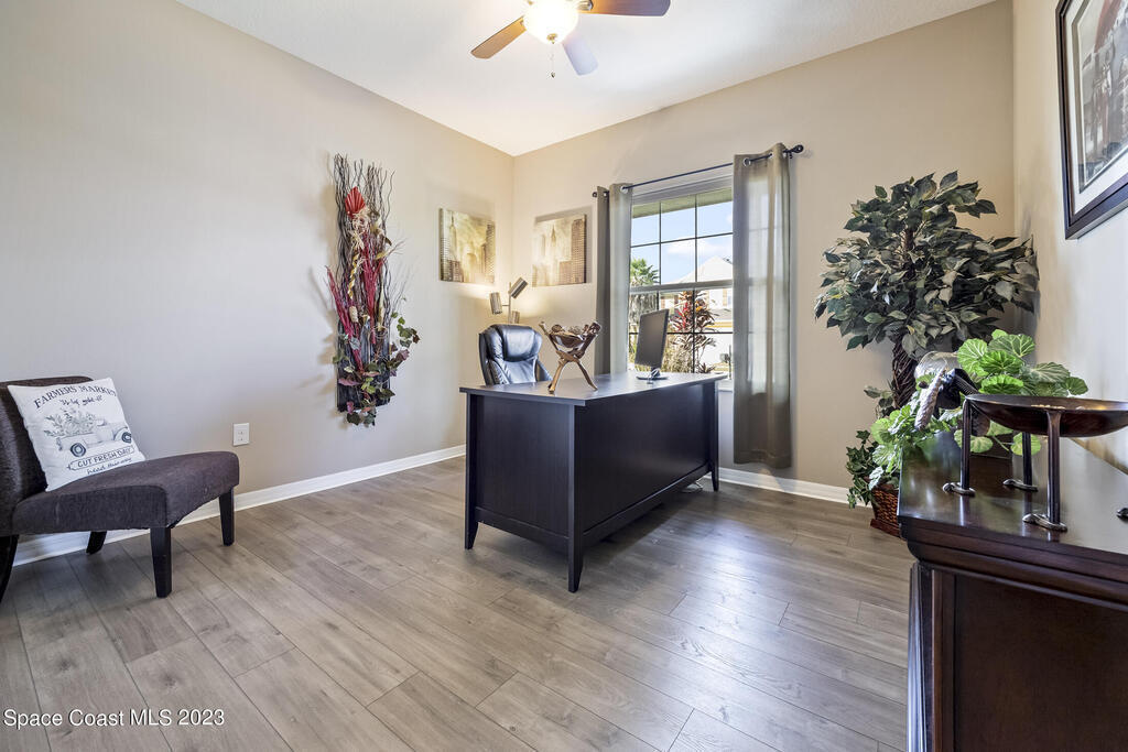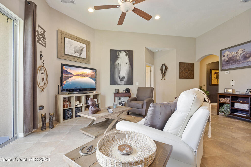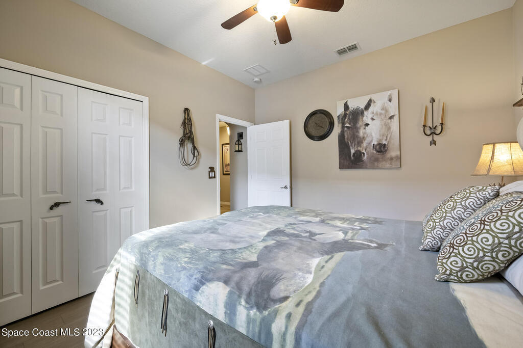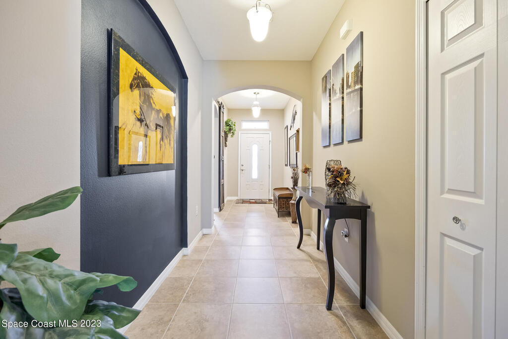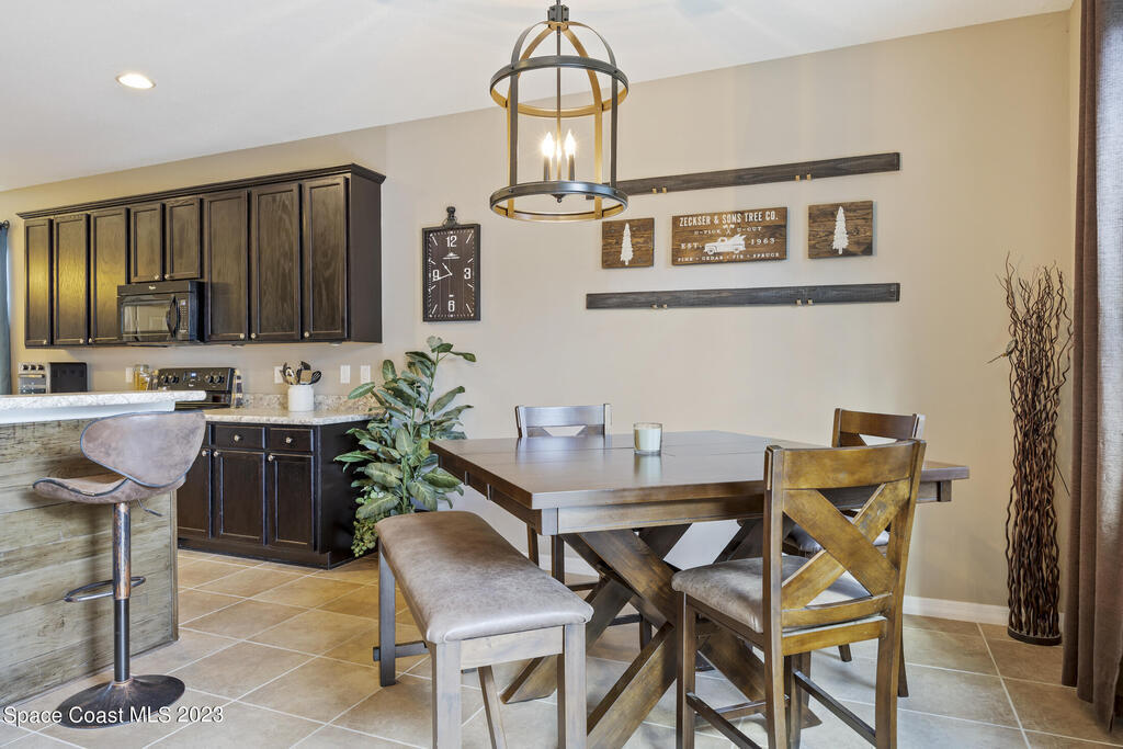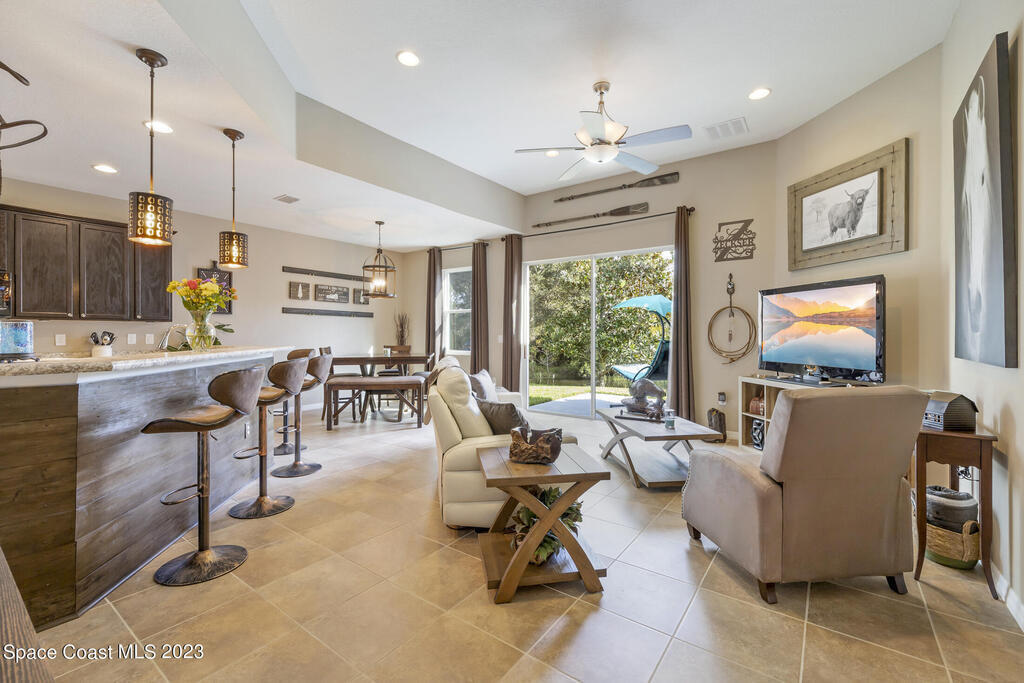 Welcome to your dream home!! This gem is in the highly sought after Manchester Lakes Community. This 3 bedroom 2 bathroom home exudes sophistication with it's 42'' espresso wood cabinets, and it's beautiful lighting fixtures, and 10' ceilings throughout the home. The open floor plan with 12' ceilings in the great room, and is accented by 8' handcrafted barn door leading to your extra bedrooms with gorgeous plank flooring, adding a bespoke charm. Retreat to your master ensuite with a fully tiled shower, and upgraded Moen plumbing fixtures. Double pane windows, and hurricane shutters, and a brand new roof to keep you secure during our stormy Florida weather. Step outside on your patio oasis to relax, and enjoy the views of the pond, and all the wildlife! This is the perfect home to entertain in! Located near fantastic shopping, the picturesque Indian River Lagoon, and great schools, this home offers both comfort, and convenience to the discerning buyer! Don't miss this opportunity