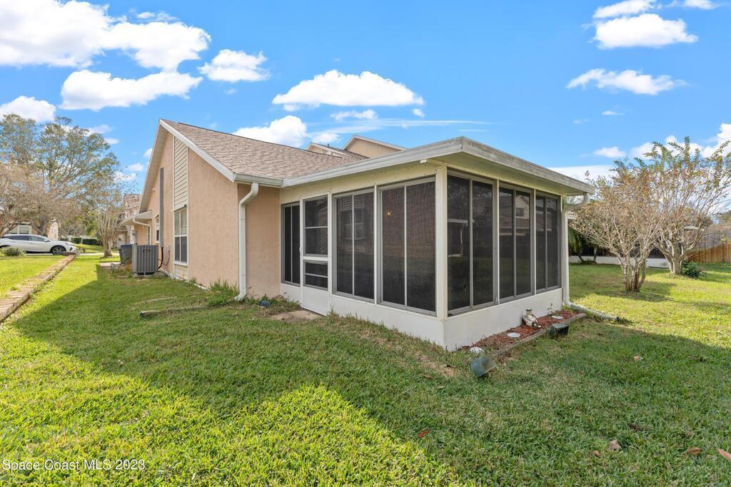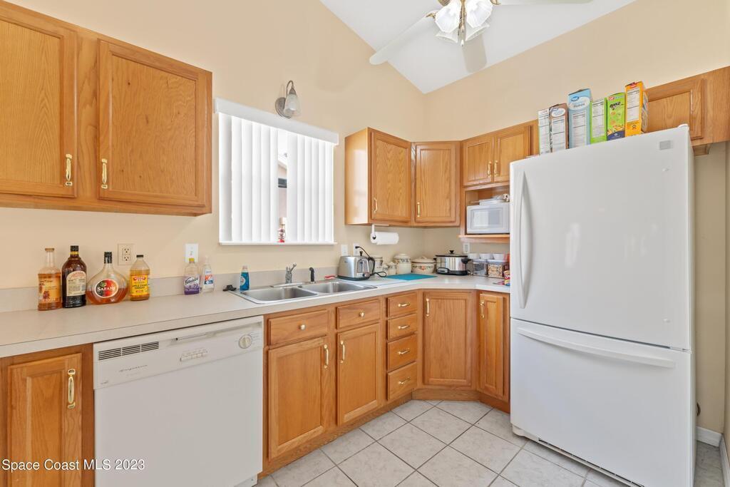 New Price!!! There's No Place Like Home! This home is the perfect seasonal address, downsize property or even busy lifestyle. Single story, end unit townhouse with interior laundry, screened patio & single garage. Open, spacious floor plan with great room concept, vaulted ceilings, skylights & tile floors in main living areas. Garage offers pull down attic stairs & recently painted floor. Honey colored cabinetry offers plenty of storage in kitchen with additional pantry closet. All coordinating, electric appliances. Primary bathroom has step in shower. Hall bathroom includes tub/shower. Basic lawn care, Internet & cable provided by HOA. Community features pool, tennis & basketball courts. Roof replaced 2020, HVAC appx 7 yrs old, water heater older. Convenient location - minutes from Space Center, cruise port, Playalinda Beach, brand name shopping, I-95 & US 1. ** HOA allows 2 pets with combined weight of 20lbs ***