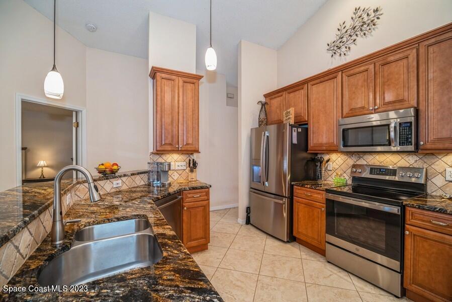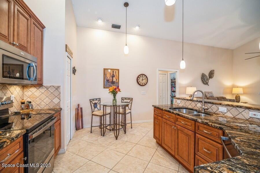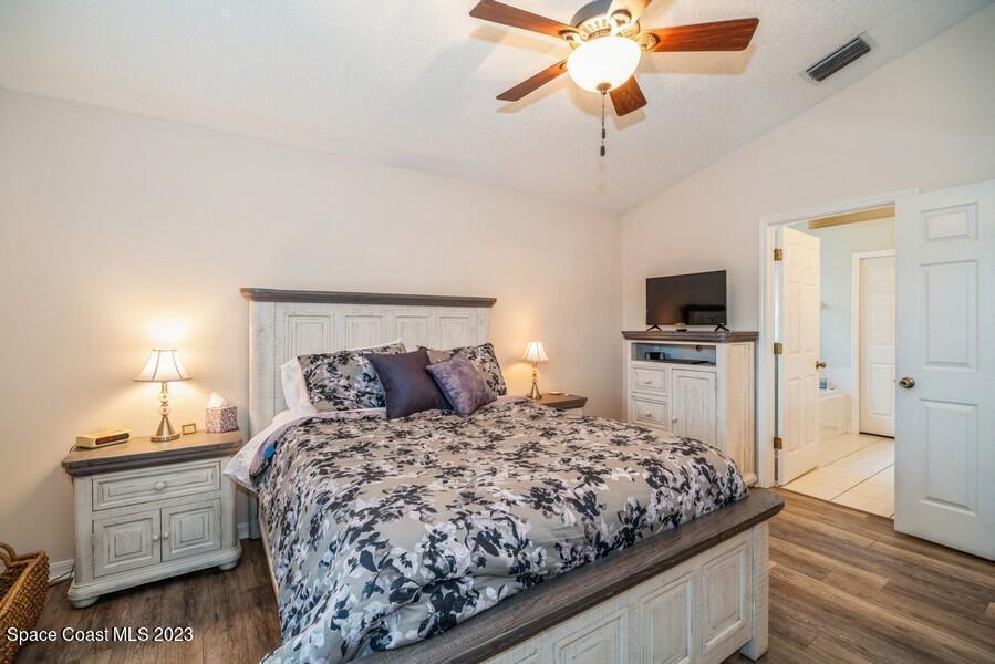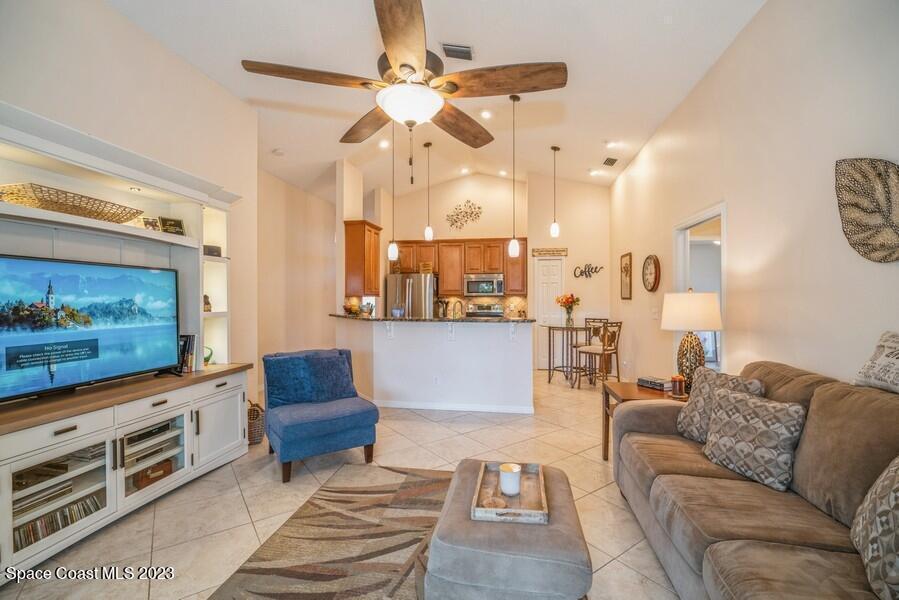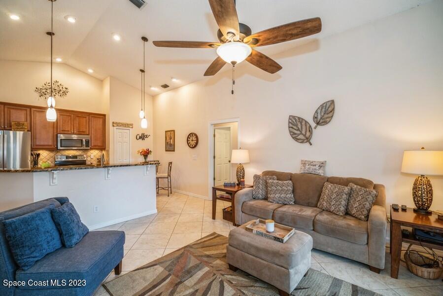 Welcome to Highly Desirable Cypress Bend centrally located with a community pool & Cabana. This 3/2 CBS Home is loaded with upgrades. Bright and Open floorplan boasts Vaulted Ceilings, Beautiful Tile throughout living area (No Carpet)! Chefs Kitchen w/ Gorgeous Granite countertops, SS appliances, 42 inch wood Cabinets, Breakfast Bar, Air-Fry Oven and layers of lighting on dimmers. All of this opening to a spacious family room. The Master suite features large walk in closet, separate shower and Relaxing jacuzzi garden tub. The serenity of the screened porch w/ a large shaded yard, mature Oak Trees and fully fenced. Perfect for Entertaining family and friends! Accordion Hurricane Shutters...Newer Appliances...newer Trane A/C. Exterior painted 2022. Luxury Vinyl Planks in bedrooms 2022.