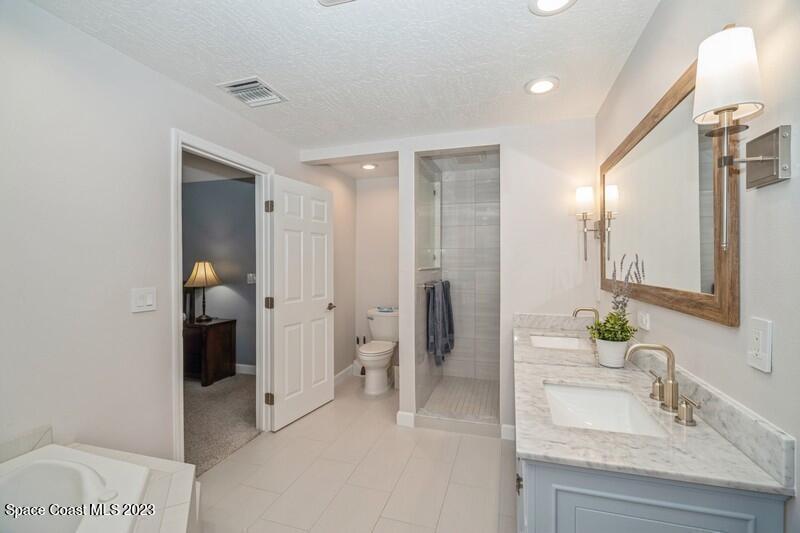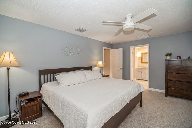 MULTIPLE OFFERS RECEIVED. Peaceful lakeside community in Suntree. This polished home has it all! The modern granite kitchen with island, showcases hand-crafted pine wood cabinetry, 5 burner gas cook top, stainless steel appliances and backsplash, double wall ovens and breakfast bar. Nice sliders off a large family room lead to an inviting screened pool and lanai. Wonderful, fenced yard .26-acre corner lot. This one-story showstopper has a new owner's suite, including new paint, baseboards and upgraded ceiling fan. New double vanity, corner jetted tub w/inline heater, shower, tile and closet system. New roof 2017, as well as 5-ton A/C unit with gas heater. This home has beautiful plantation shutters and hurricane shutters. Hurry this home will sell quickly!