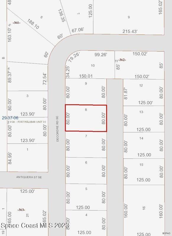 THIS DELIGHTFUL PARCEL SHOWCASES CITY WATER, PAVED ROADS, AND THE REAR DRAINAGE CANAL OFFERS EXTRA DISTANCE AND PRIVACY FROM BACK-DOOR NEIGHBORS! A PERFECT LOCATION WITH NEW CONSTRUCTION AND THE AREA'S BEST AMENITIES ALL AROUND! THE NEWLY RENOVATED INSPIRATION PARK IS A BIKE RIDE AWAY, FEATURING A STATE-OF-THE-ART PLAYGROUND, A PICNIC PAVILION, AND GRASSY SPOTS. BUSTLING MALABAR ROAD IS CLOSE BY OFFERING A WIDE VARIETY OF SHOPPING, DELICIOUS RESTAURANTS, BANKING, MEDICAL SERVICES, ACCESS TO I-95, AND MUCH MORE. TURNER ELEMENTARY AND SOUTHWEST MIDDLE SCHOOL ARE RIGHT AROUND THE CORNER FOR A QUICK DRIVE, BIKE RIDE OR WALK. HERITAGE HIGH IS 13 MINUTES. THE SHORES OF THE INDIAN RIVER AND THE SANDY ATLANTIC OCEAN BEACHES ARE ABOUT HALF AN HOUR AWAY!