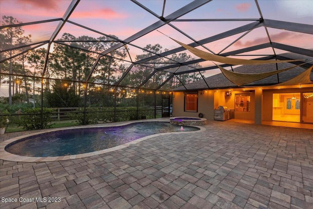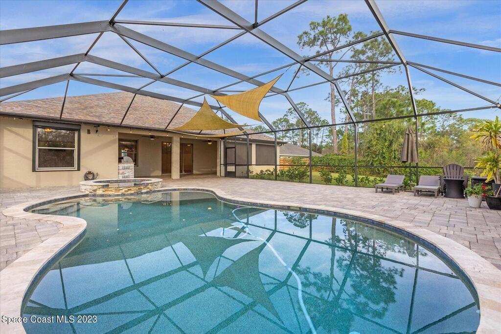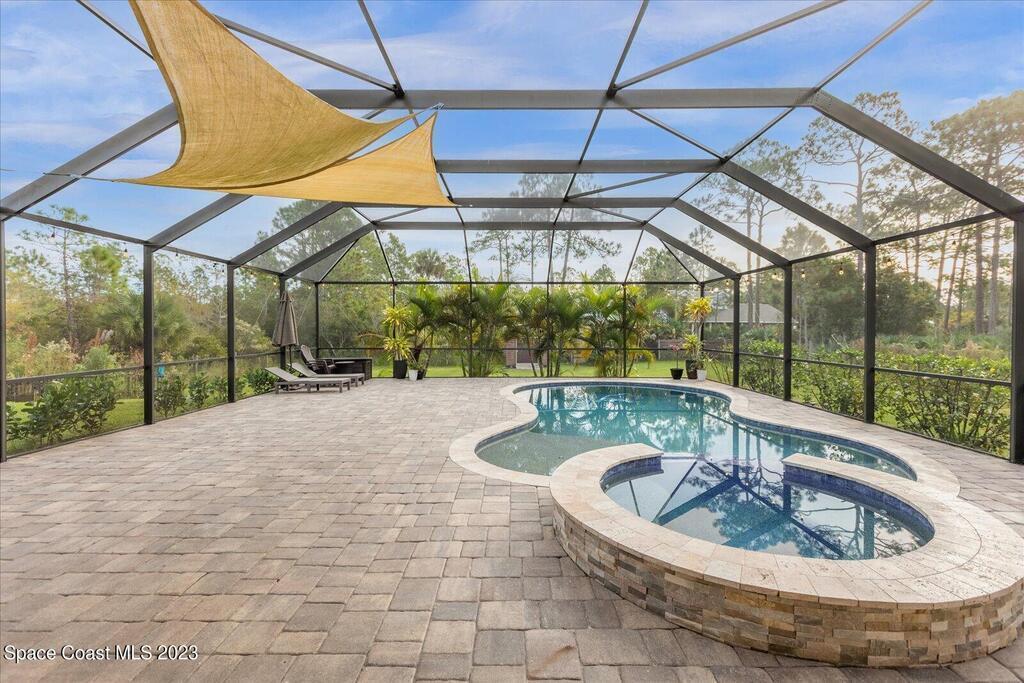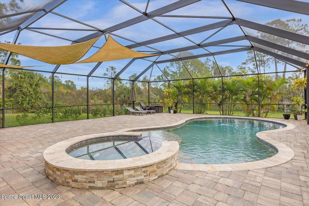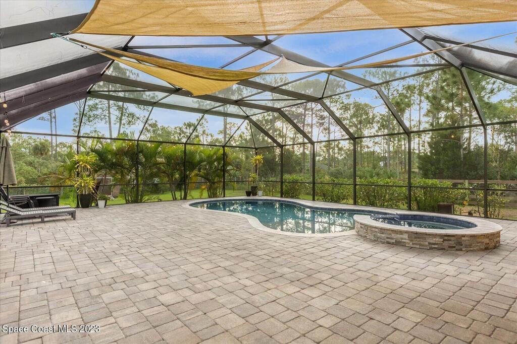 BRING YOUR HORSES to this equestrian gated community! This handsome rural 4 bedroom 2 bathroom pool with spa estate home is 2,442 sqft, with a 780 sqft 3 car garage, 1,700 square foot outdoor screened area, with 1,300 sqft of pavers, with a shed, and a walk in chicken coop. This home has $88,000 in recent upgrades including Bahama shutters throughout, custom stonework on the front of the home. Newer appliances, newer flooring, granite counter tops, upgraded light fixtures, wainscoting, and much more! Bring your toys. Plenty of storage.