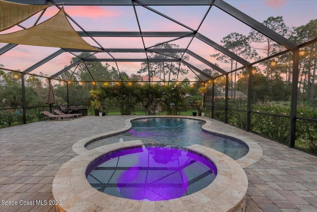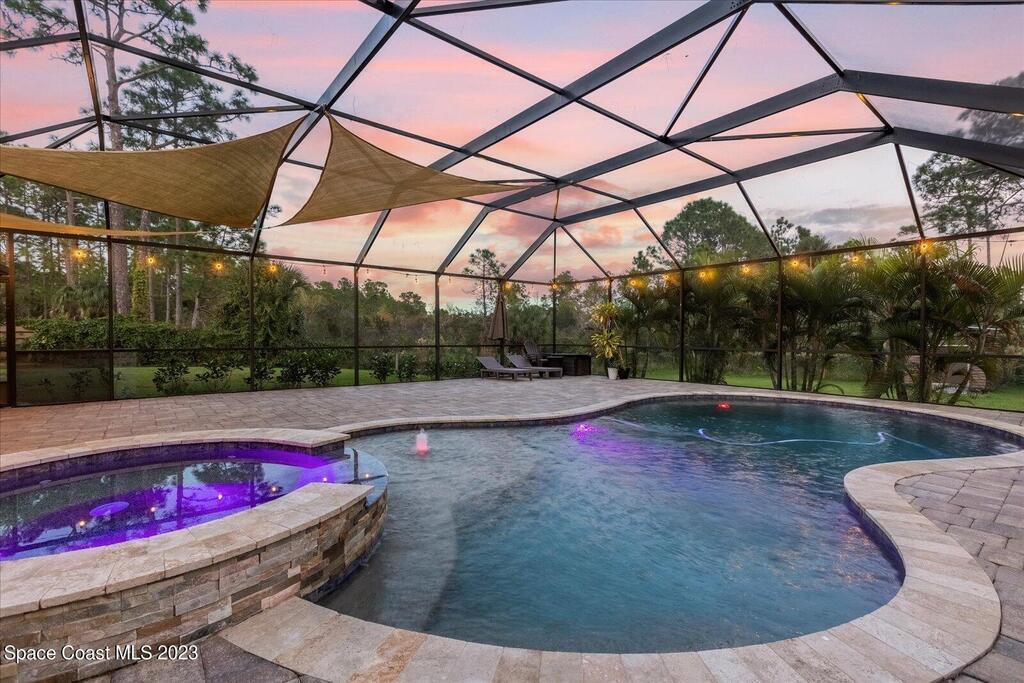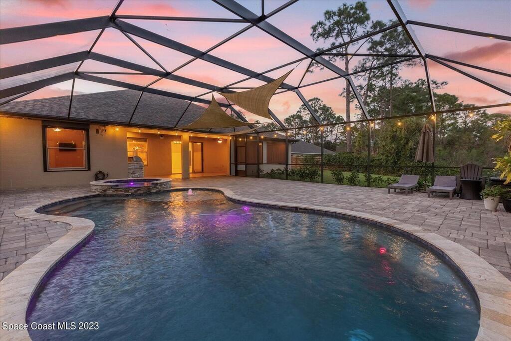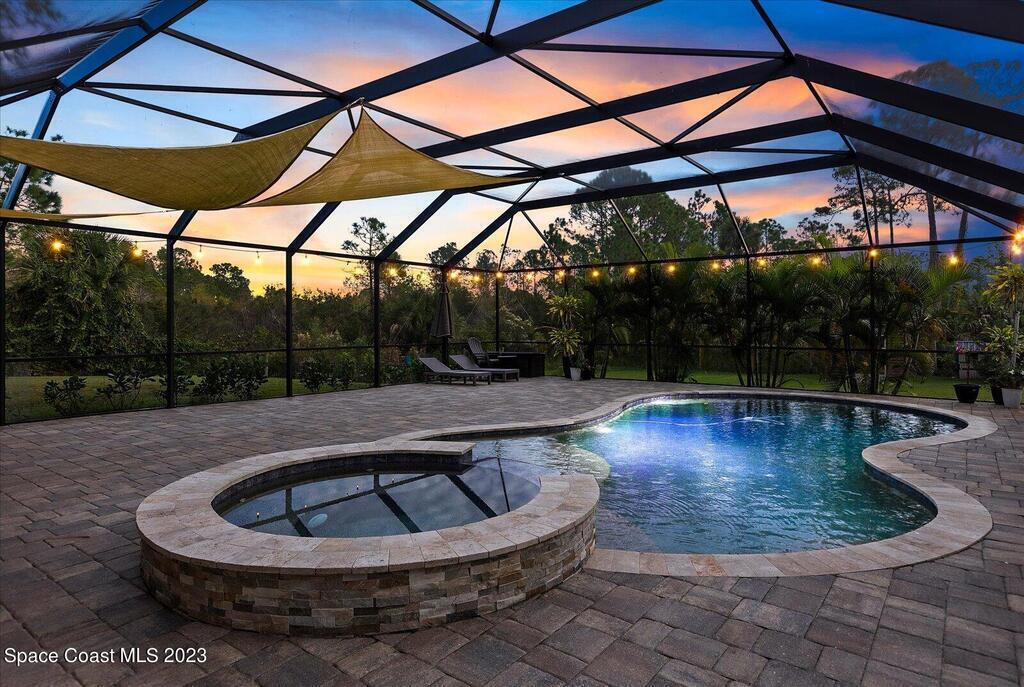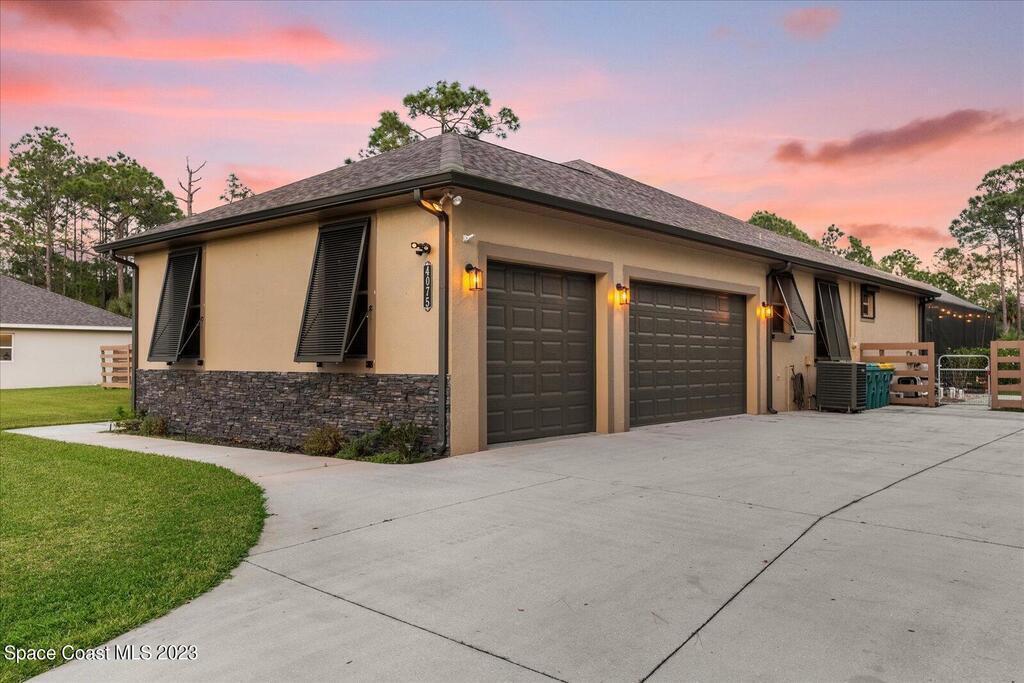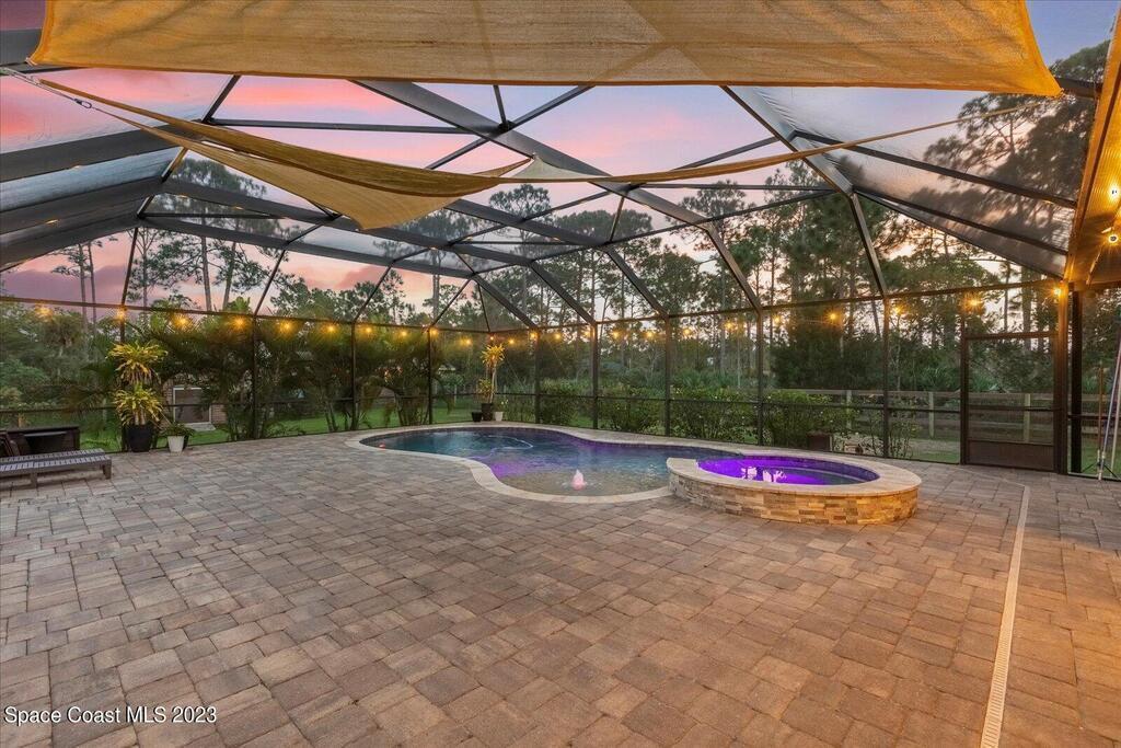 BRING YOUR HORSES to this equestrian gated community! This handsome rural 4 bedroom 2 bathroom pool with spa estate home is 2,442 sqft, with a 780 sqft 3 car garage, 1,700 square foot outdoor screened area, with 1,300 sqft of pavers, with a shed, and a walk in chicken coop. This home has $88,000 in recent upgrades including Bahama shutters throughout, custom stonework on the front of the home. Newer appliances, newer flooring, granite counter tops, upgraded light fixtures, wainscoting, and much more! Bring your toys. Plenty of storage.