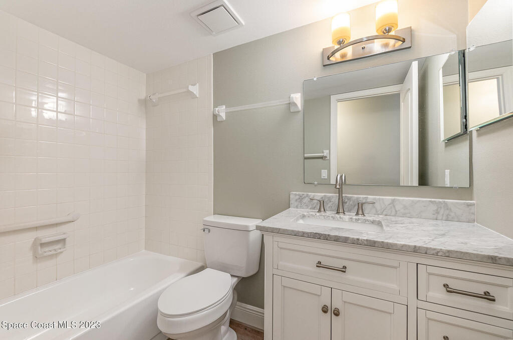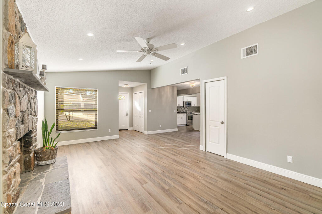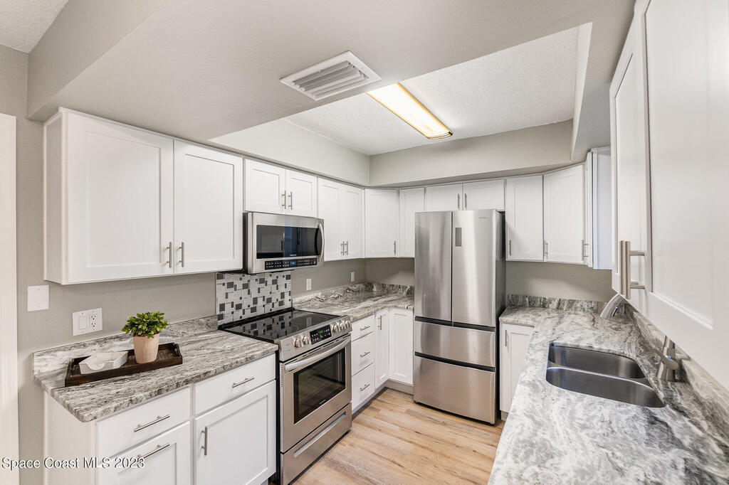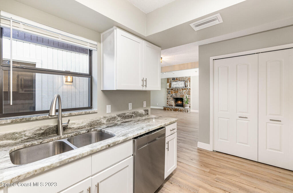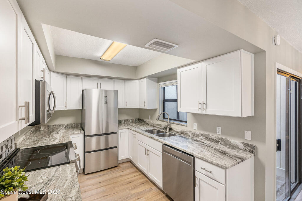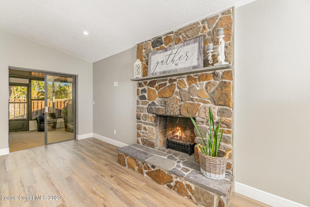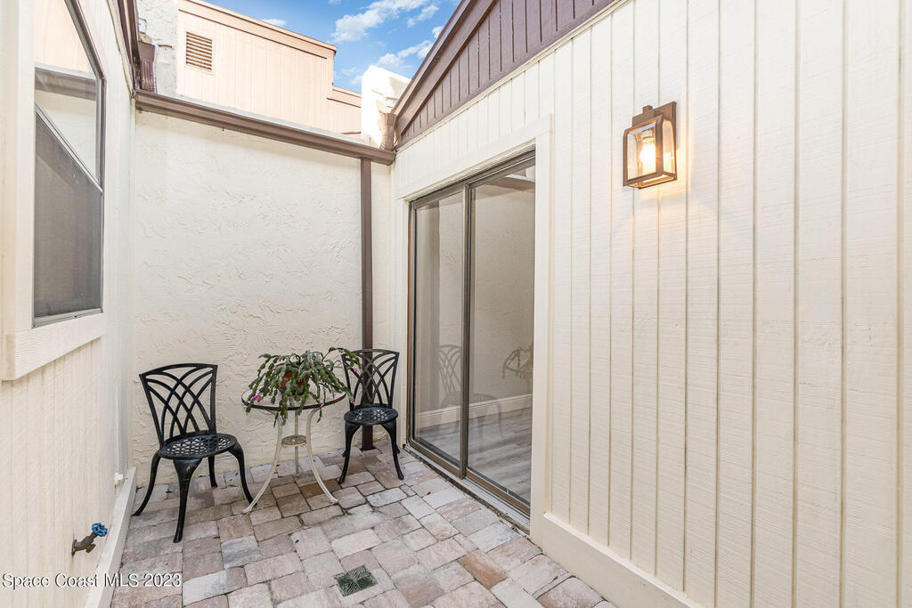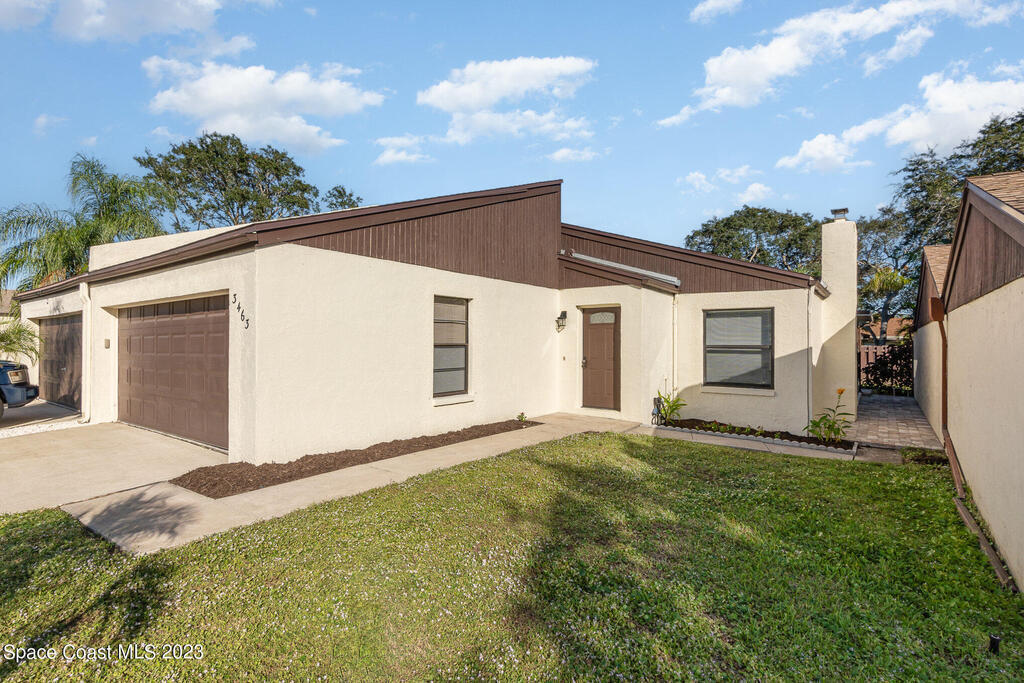 This is the one you have been waiting for! Fully Updated 2 br, 2 bath, 2 car garage! This lovely townhouse has LVP plank flooring, a gourmet kitchen with shaker cabinets, stainless appliances, granite counters, newer roof & A/C and more! The beautiful bathrooms have updated fixtures & the walk in master closet is a dream. The family room features a floor to ceiling stone fireplace, the screened in back patio has sliding glass doors from the family room & master! The bonus paver private courtyard is not only fun, but lets in tons of light. The neighborhood has a sparkling pool, sidewalks, and is close to Wickham Park, shopping, medical facilities, Northrop-Grumman, L3Harris, Eastern Florida State College, FIT and much more. You will also be a short 10 minute drive to I-95 or the Beach!