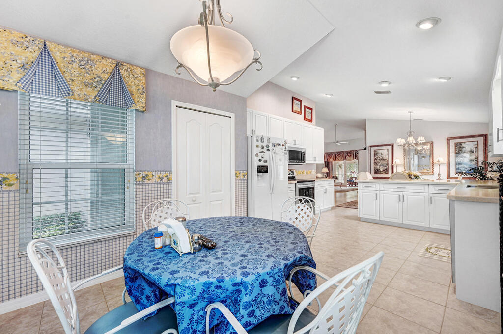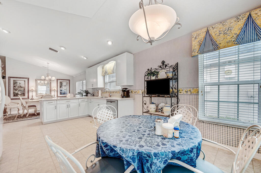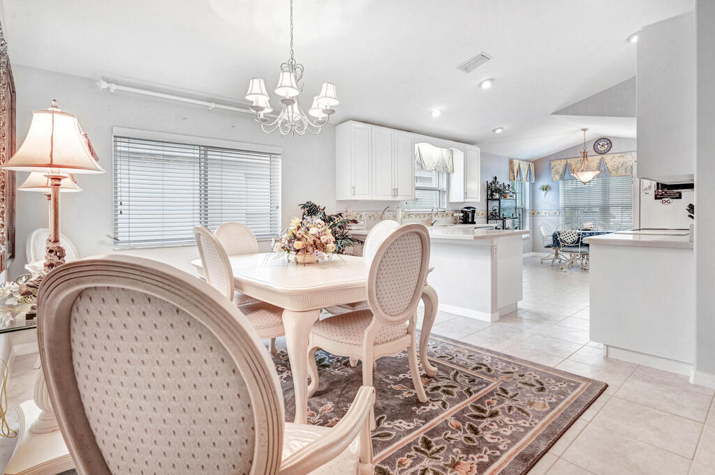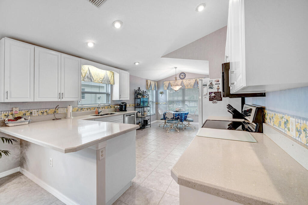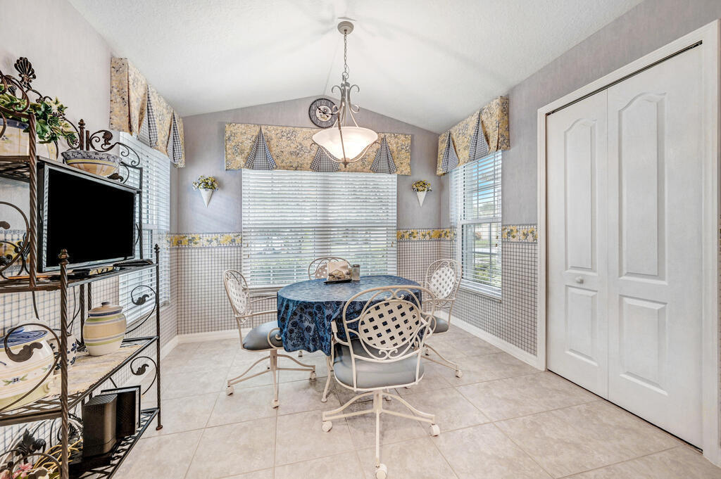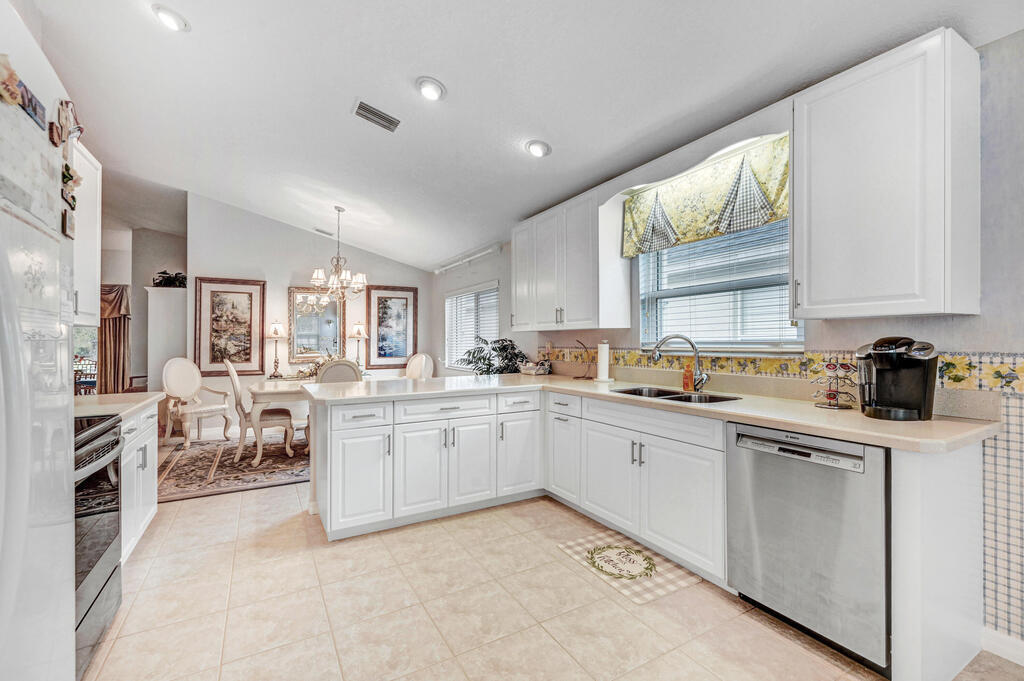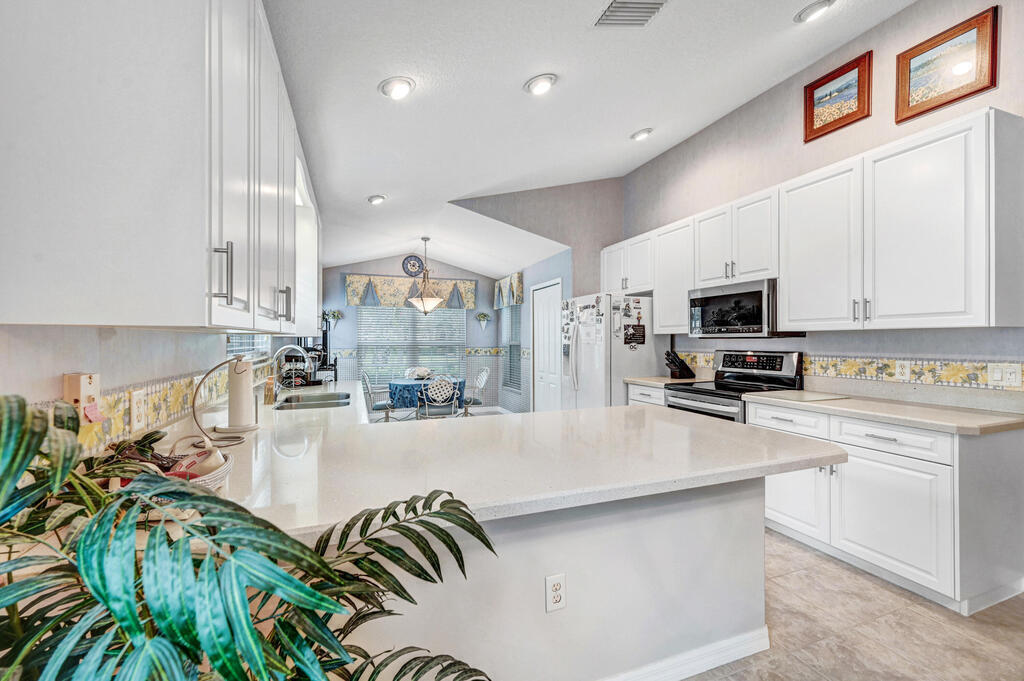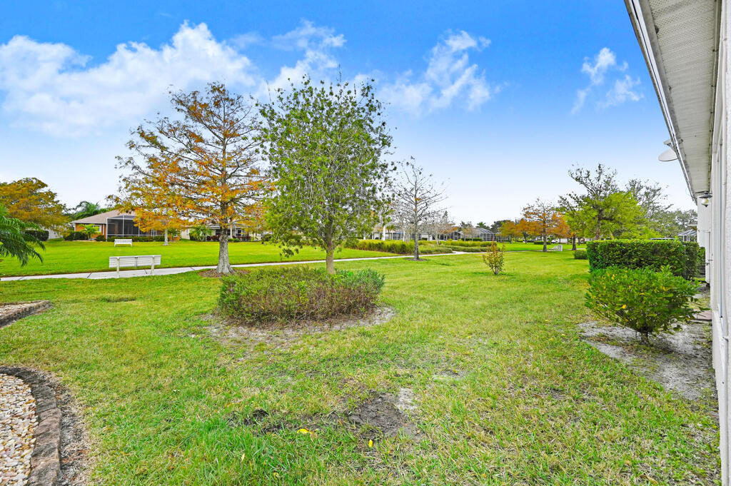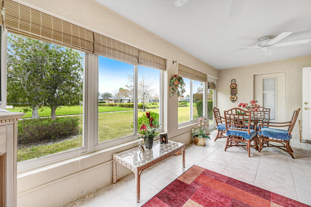 Beautiful, upgraded home in one of the best 55+ communities on The Space Coast! This home is move-in ready! HOME BACKS TO A BEAUTIFUL PARK (no neighbors directly behind!). This popular floor plan features a large kitchen with nook, dining area and a large living room. New cabinets in kitchen and bathrooms! The high ceilings and tile flooring make this home appear light and bright! Easy to clean tile throughout the home, gorgeous laminate in the bedrooms! The 253 SF ENCLOSED PORCH is added to the living area, but is not ducted. It easily could be ducted if desired. Windows around the home were replaced in 2021 and are very nice, high quality windows! All of the these windows have accordion shutter protection! The Florida Room windows are hurricane rated glass! Roof is 2017, AC is 2015. There is plenty of room behind the home to add a large paver patio or screened lanai. So many extras with this home!
