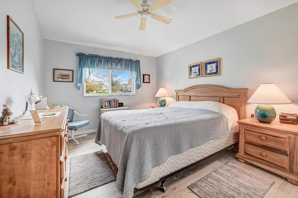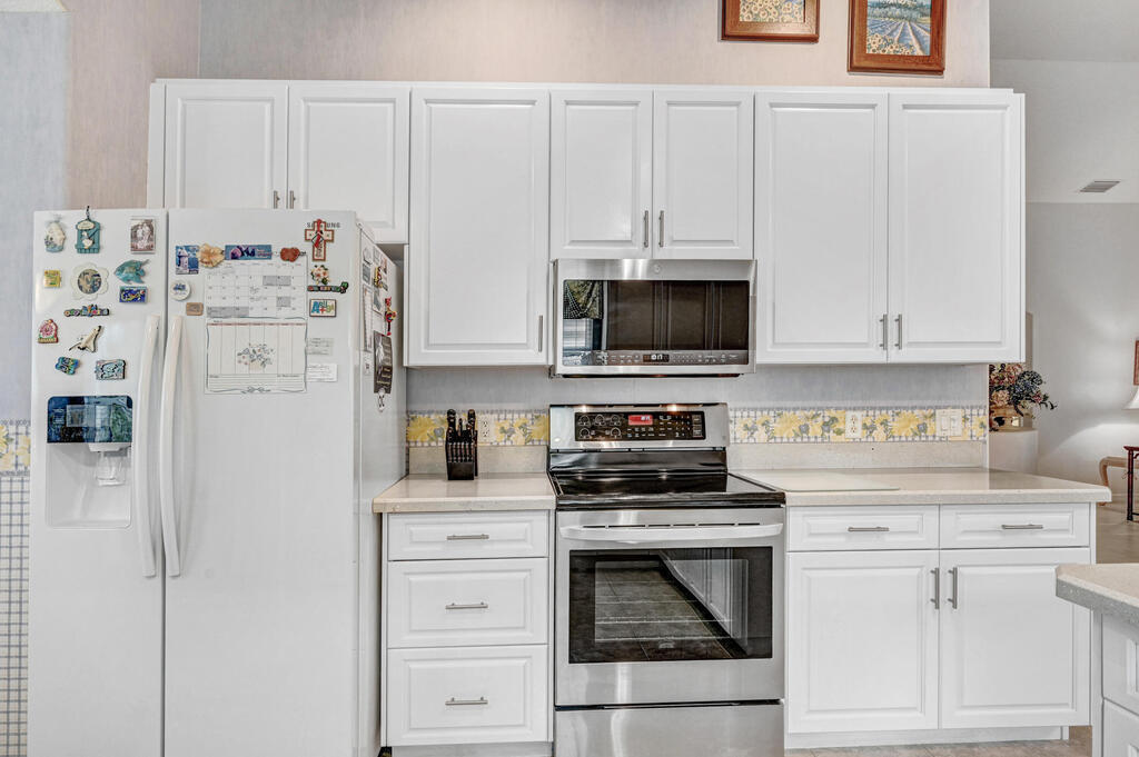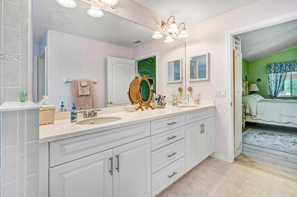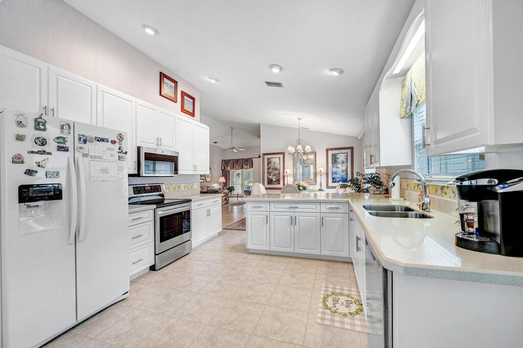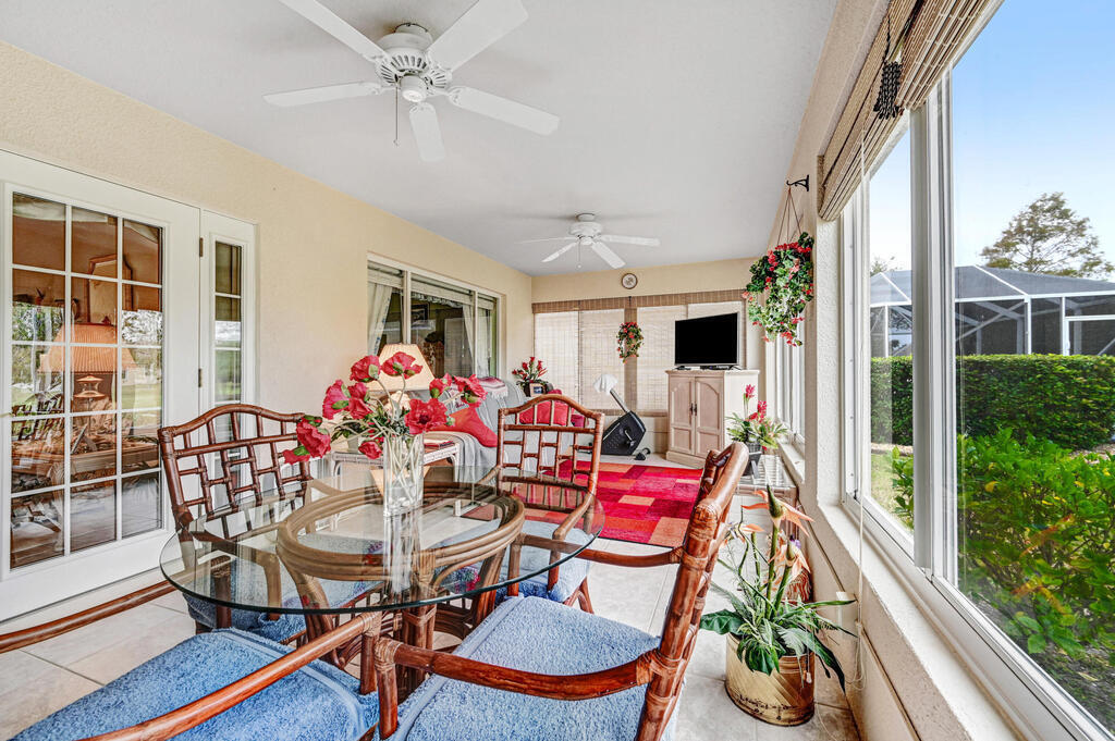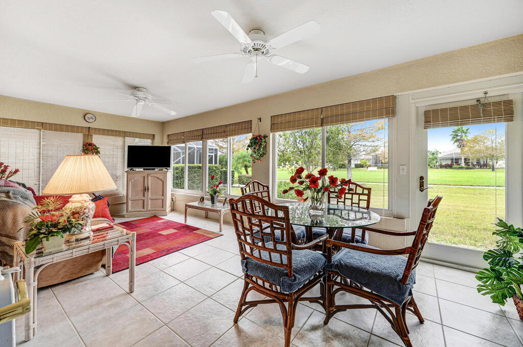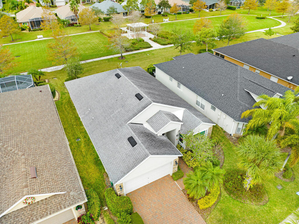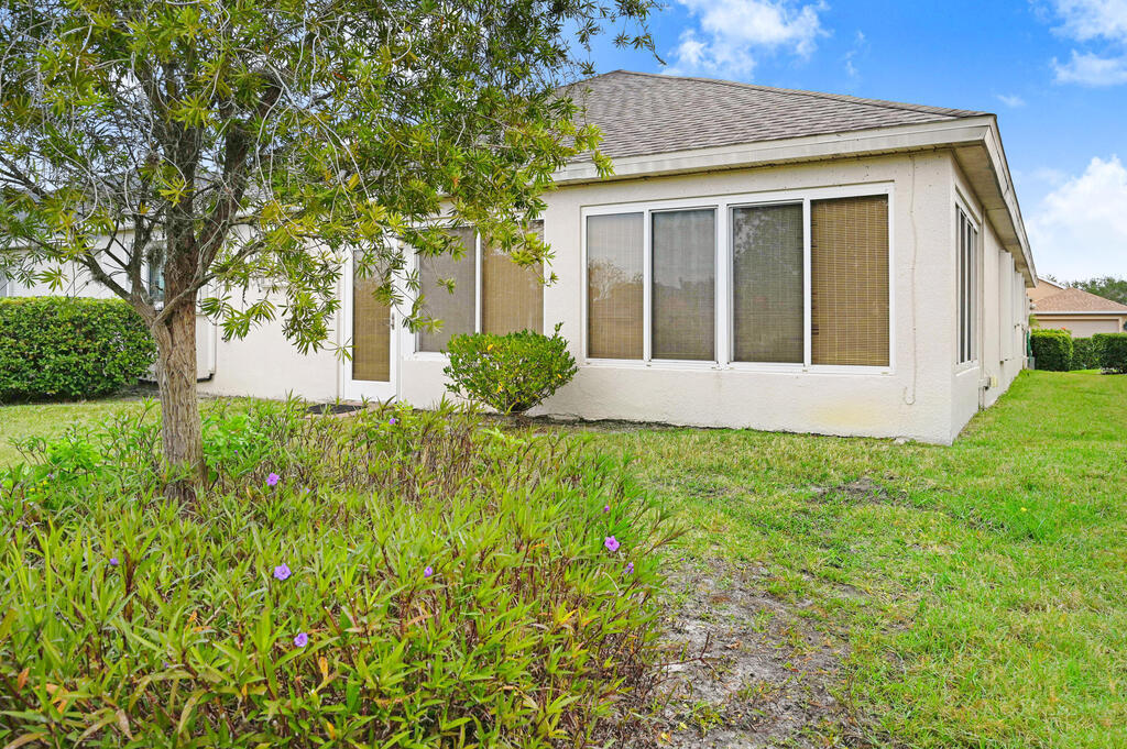Beautiful, upgraded home in one of the best 55+ communities on The Space Coast! This home is move-in ready! HOME BACKS TO A BEAUTIFUL PARK (no neighbors directly behind!). This popular floor plan features a large kitchen with nook, dining area and a large living room. New cabinets in kitchen and bathrooms! The high ceilings and tile flooring make this home appear light and bright! Easy to clean tile throughout the home, gorgeous laminate in the bedrooms! The 253 SF ENCLOSED PORCH is added to the living area, but is not ducted. It easily could be ducted if desired. Windows around the home were replaced in 2021 and are very nice, high quality windows! All of the these windows have accordion shutter protection! The Florida Room windows are hurricane rated glass! Roof is 2017, AC is 2015. There is plenty of room behind the home to add a large paver patio or screened lanai. So many extras with this home!