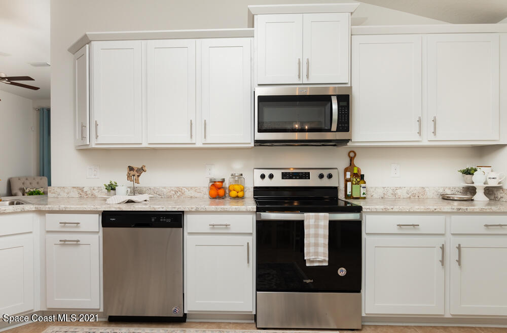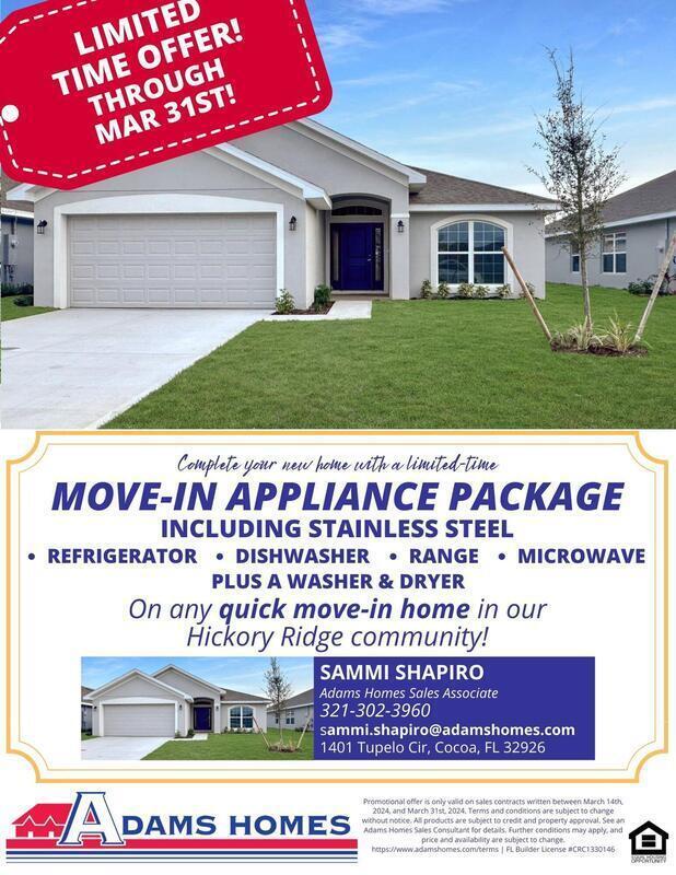 4.99% FHA/VA MORTGAGE + $10K FLEX CASH! ALL CLOSING COSTS PAID. (except escrow accounts) with approved lender. FULL Move In Stainless Steel APPLIANCE Package! including Refrigerator & Washer & Dryer $1000 Escrow Deposit. NO CDD! Great Access to Orlando and the Space Center. Minutes from Historic Cocoa Village, Port Canaveral and the Beaches, This 4/2 home features an open floor plan with 10' vaulted ceilings. Kitchen features 36'' White Cabinets w/crown molding, Moen faucets, stainless steel appliances and pantry. Owners Suite w/large walk-in closet, 5' shower and linen closet. Home has a 13 x 10.6 Lanai, Tile throughout except bedrooms. R-30 Insulation, Taexx Pest prevention system, double pane (low E) windows w/storm shutters and so much more. Energy Efficient w/10-year structural builder and manufacturer warranties all included. SAMPLE STOCK PHOTOS