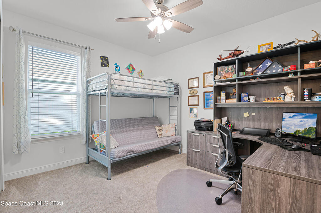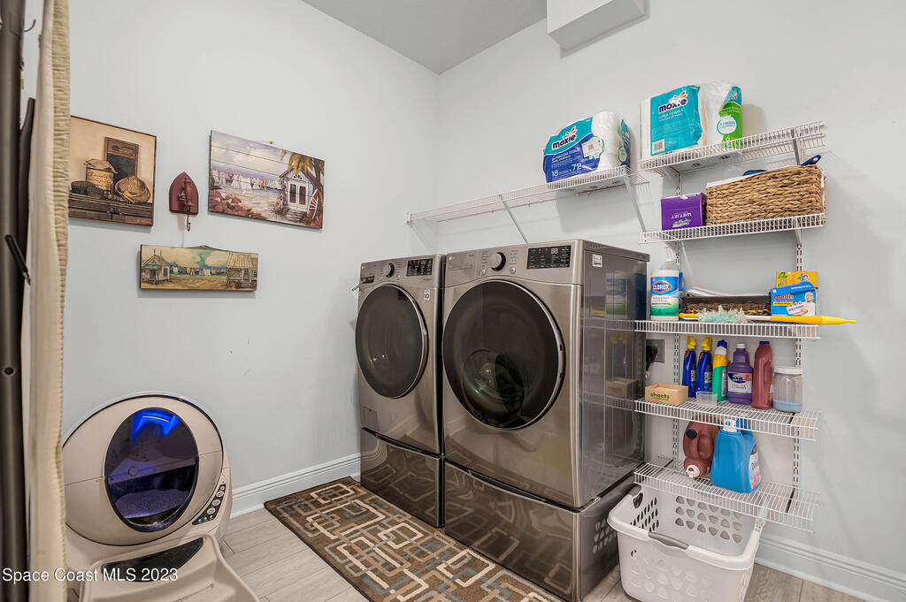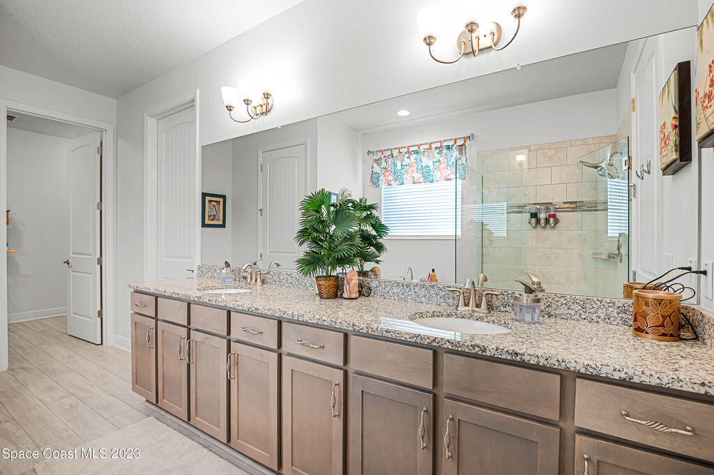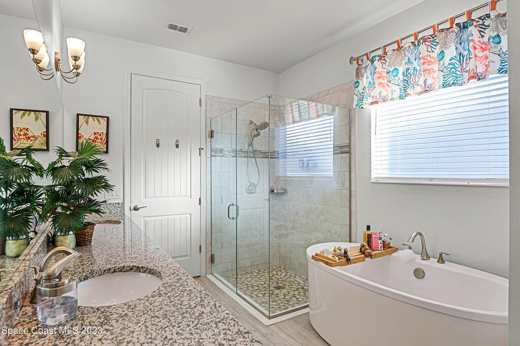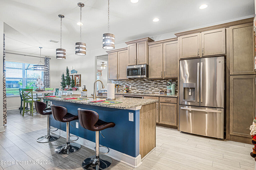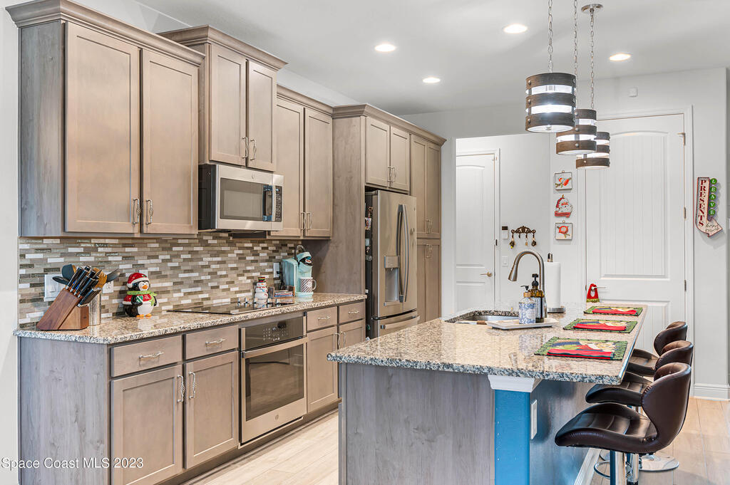 Beautiful, move-in ready lakefront home with four bedrooms, three baths, a 3-car garage, and an electric heated spa and pool with many upgrades (too many to list; please see attached upgrades list)! The house is in the gated Country Club Estates community of Palm Bay. This spacious home has an open floor plan, 9-foot ceilings, 8-foot doors and closets. No expenses spared: granite countertops, large walk-in closets, upgraded landscaping, electrical upgrades, ceiling fans and lighting throughout, upgraded sprinkler system, roll-out awning to the back porch with lights. The spacious Kitchen has a large island with two pantries; one is a hidden walk-in with lots of shelving to store everything and plenty of cabinets for storage equipped with pull-out racks! Enjoy your evenings in the serene backyard. The heated in-ground saltwater pool and spa allow for year-round use with a lake view. The screened enclosure will keep all the bugs away. The home has newly installed gutters and a generator