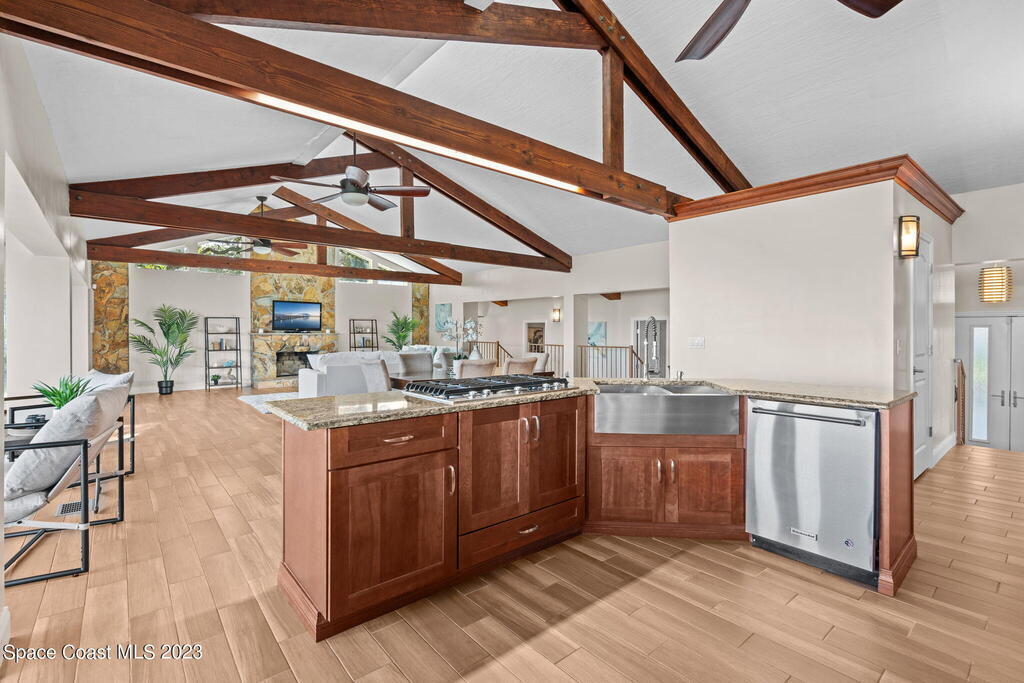 Direct riverfront sunrise views! Less than 10 minute boat ride to Canaveral Locks! Extreme home make over! Taken to studs in 2016 & completely rebuilt between 2016-now. Meticulously remodeled & maintained. Extra wide DOUBLE LOT, 0.56 acres! IMPACT windows & doors! New exterior stucco & paint, septic tank & drain field replaced, replumbed, new electric panel & electrical, new AC & duct work, cedar lined closets. Generator w/ auto transfer switch 2020. Bedroom 4 pre-plumbed for bath. Stone coated metal tile roof 2017, rear flat roof 2022. Rebuilt & raised 142' coquina seawall. 150' DOCK with kayak rack & kayak launch. Commercial grade gate with automatic opening on south side. Oversized, extra deep 2 car garage w/ hurricane rated door. Sprinkler system replaced, fresh sod, fully FENCED & 25 truck loads fill dirt to raise elevation, leaf filter on gutters.