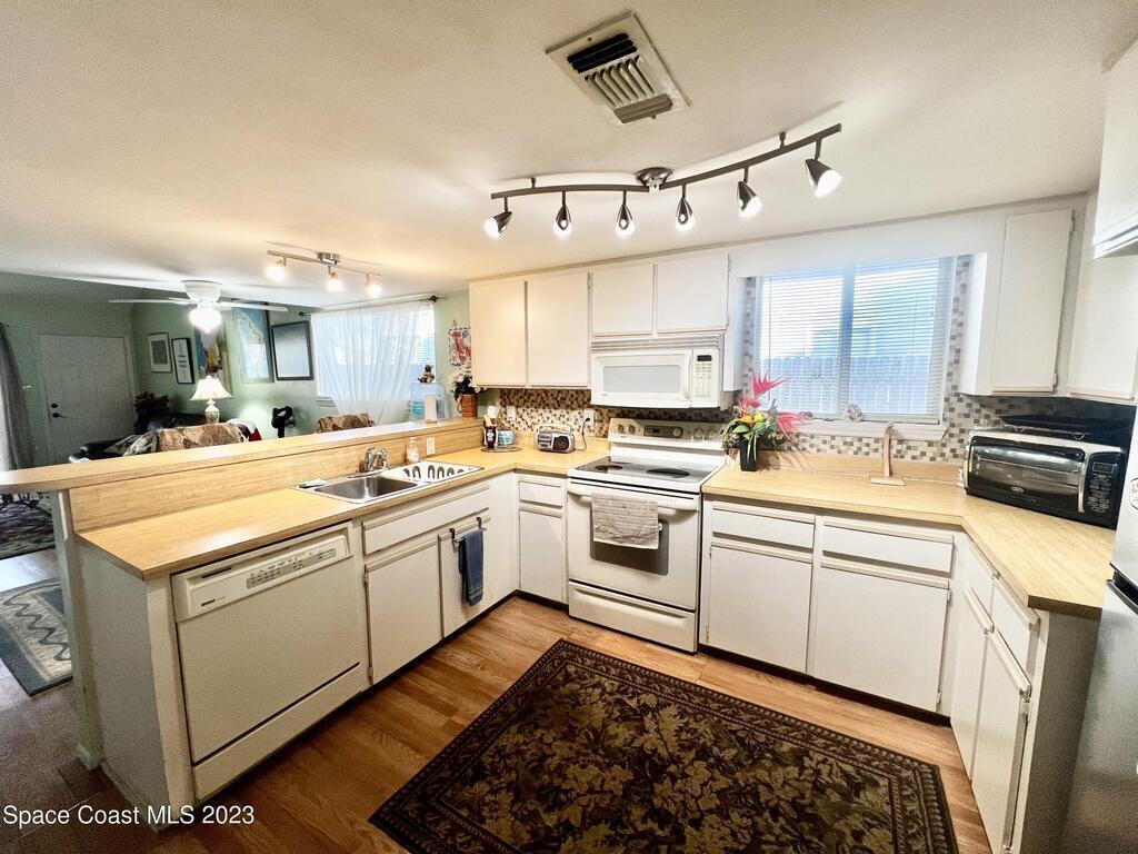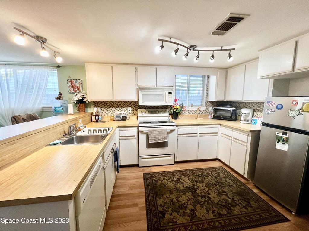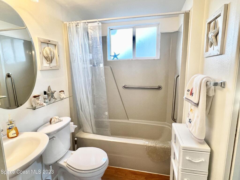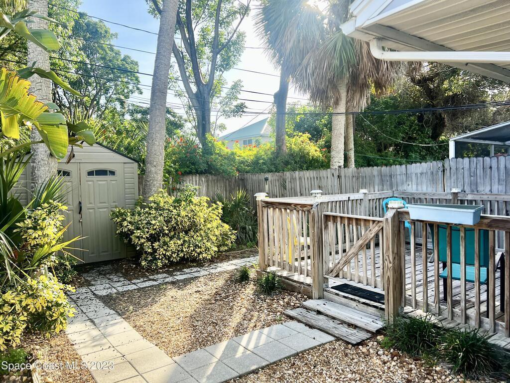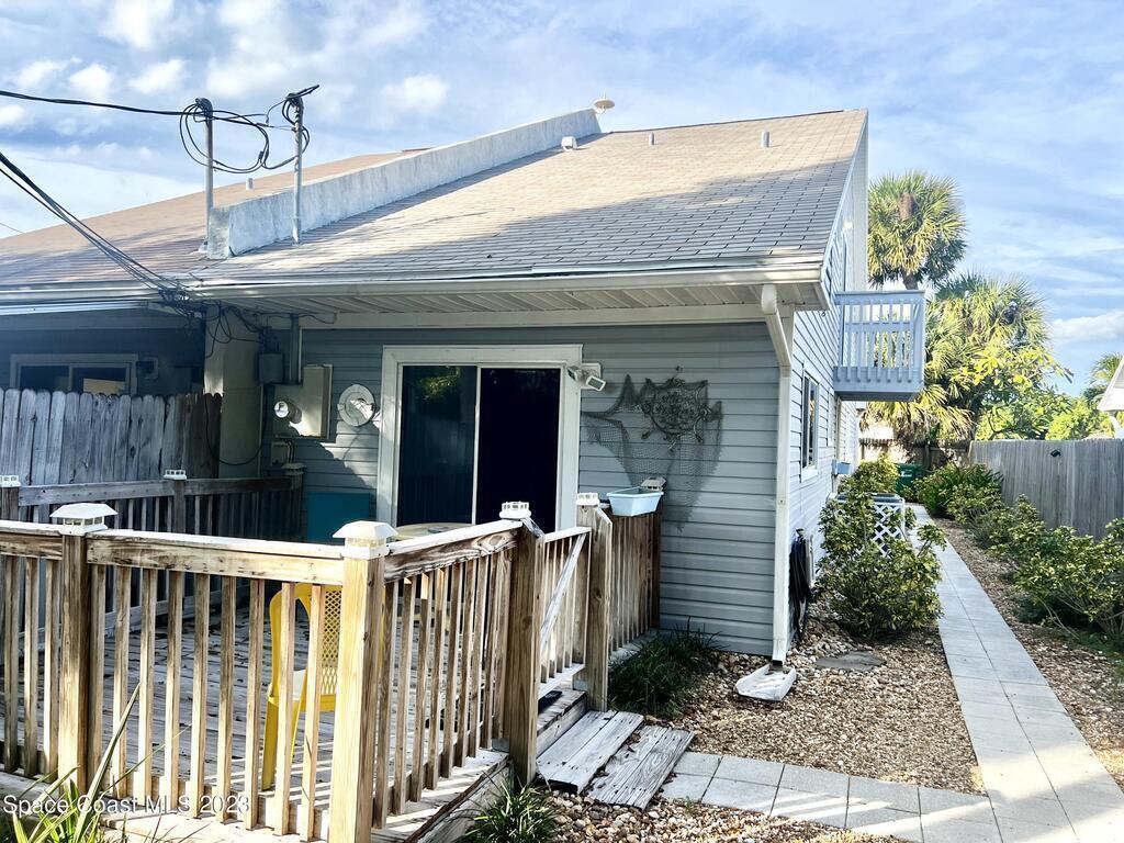 Charming, 2 Bedroom 2 Bath, Oceanside Retreat ONE BLOCK from the Beach with Beach Access. NO Home owners association. BREVARD COUNTY APPROVED FOR SHORT TERM RENTALS. Enjoy your cozy 2 Bedroom 2 Bath beach loft year round or rent it out daily for eager vacationers looking for a hidden gem with an abundance of entertainment seconds away! Both the front and back yard have patios and the property is enclosed with a privacy fence. Extra storage building in the backyard for all your tools and toys. Watch the ground rumbling rocket launches, ride your bikes to the Port or walk across the street to putt putt golf and aerial rope courses, climbing, zip lines and more. Perfect Location to experience all the fun adventures of Cocoa Beach and Cape Canaveral! Roof age 2012. Air Handeler and Condenser replaced in 2021. New Washer and Dryer. This home was loved and well cared for by owners. Townhome comes furnished.