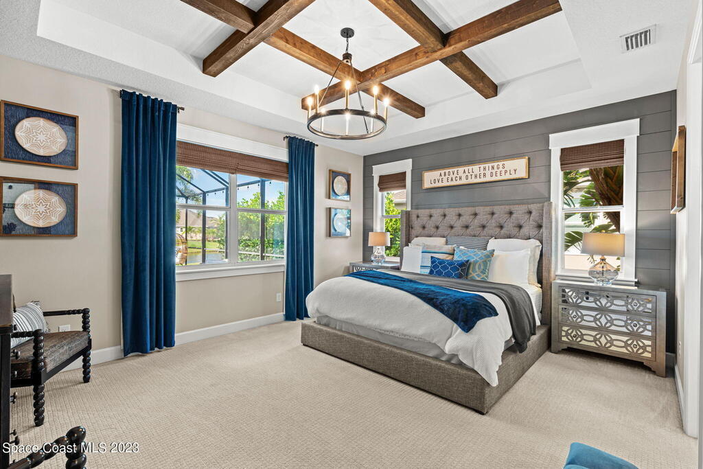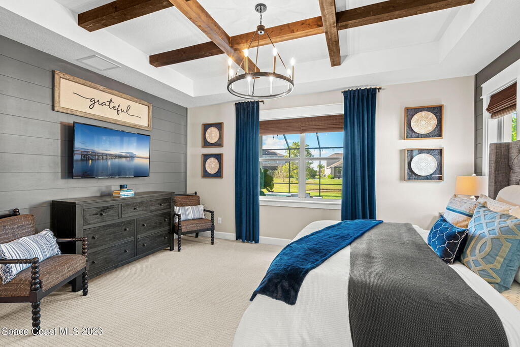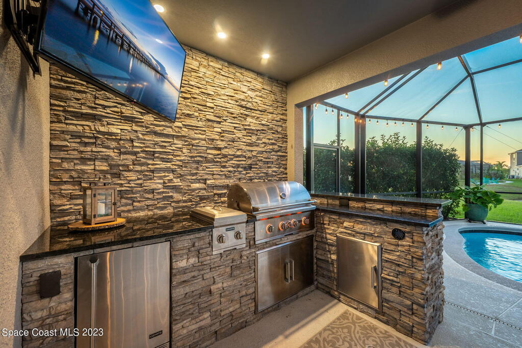 Welcome home to your beautiful two-story residence in Trasona, featuring an excellent layout, bespoke wood work and great outdoor living space. Natural light brightens the main living areas, & the living room offers views of the fabulous pool. Charming open kitchen has ample cabinet space, granite counters, stainless steel appliances, and a breakfast bar. Generous primary suite has gorgeous exposed wood beams on the ceiling and an attached bathroom with walk-in shower, separate tub, and dual sinks. The expansive walk-in closet offers great storage space. Upstairs, gather the family for movie night in the large media room. Built-ins and professional organizing systems offer convenience and functionality. Outside, a screened-in pool, patio, and summer kitchen make entertaining a breeze!