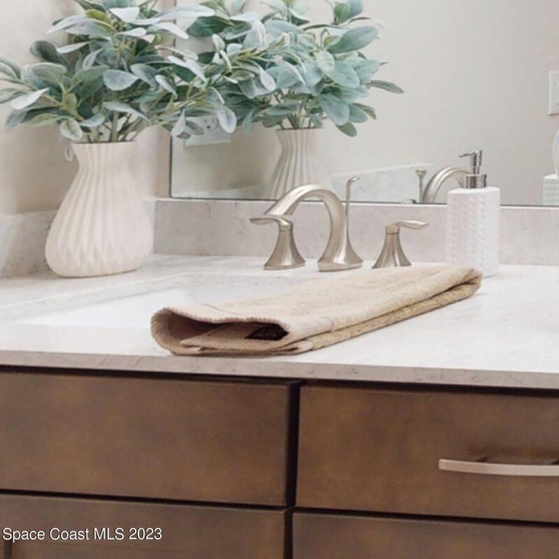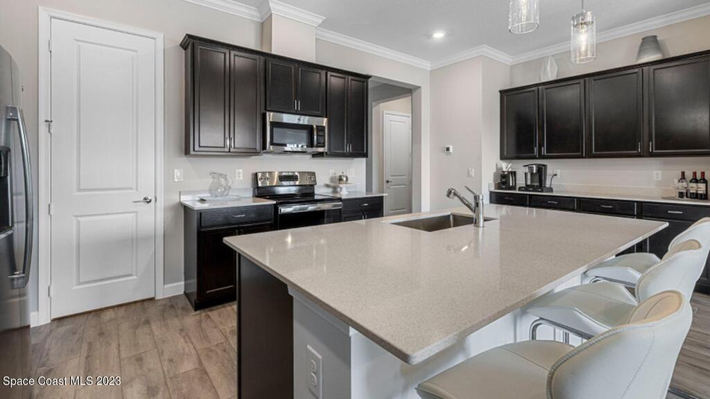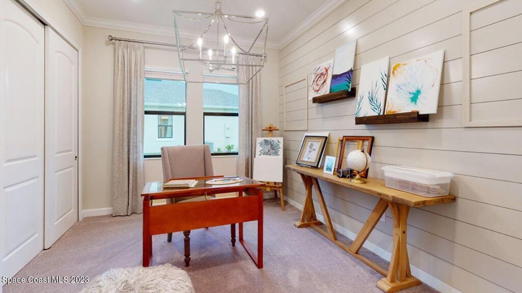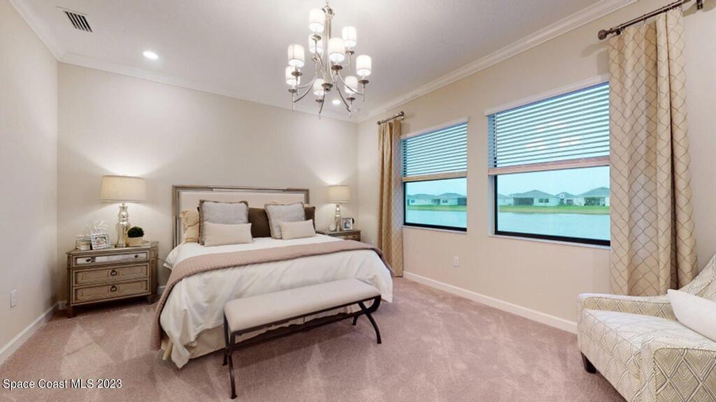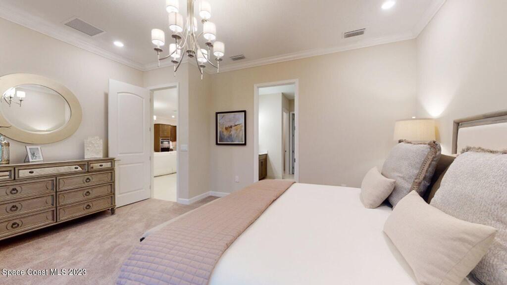 Welcome to Timbers at Everlands ~ Palms Bay's Newest 55+ Community. This luxurious single-story home includes three bedrooms, each with a private full bathroom, as well as a Office/Den. The owner's suite boasts a walk-in shower and large closet. The open-concept Great Room, is comfortably located between the covered patio, dining room and kitchen with a large center island. This home features Light Brown Cabinets with Crown Molding and 7 x 22 ''Wood Plank'' tile throughout the ENTIRE HOME as well as Crown Molding in all Main living areas and Owner Suite. This move in ready home will but you living the dream in the new year!!! Be sure to ask a new home consultant about our Builder Incentives.