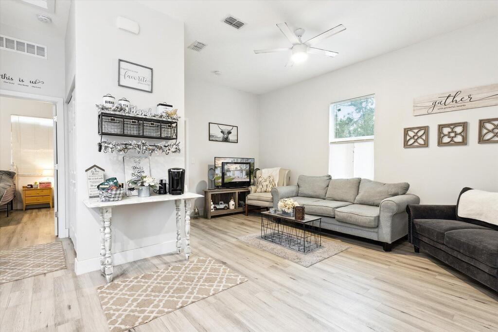 INVESTORS! Check out this unique one acre property. Only 2 years old, 2bd, 1bth cottage is a perfect starter home, currently rented by a steady tenant. Vinyl plank flooring, new kitchen, new appliances, new bathroom and laundry. HVAC, high impact windows. Detached 4 car garage with 10 ft high doors with a double door in the middle is a dream man cave! Car Lift, Compressor and Shipping Container do not convey , but are negotiable A perfect workshop for any hobbies. Store your cars, boats, motorcycles, smaller RVs, quads and more... Plenty of room to grow. Don't miss this great opportunity!