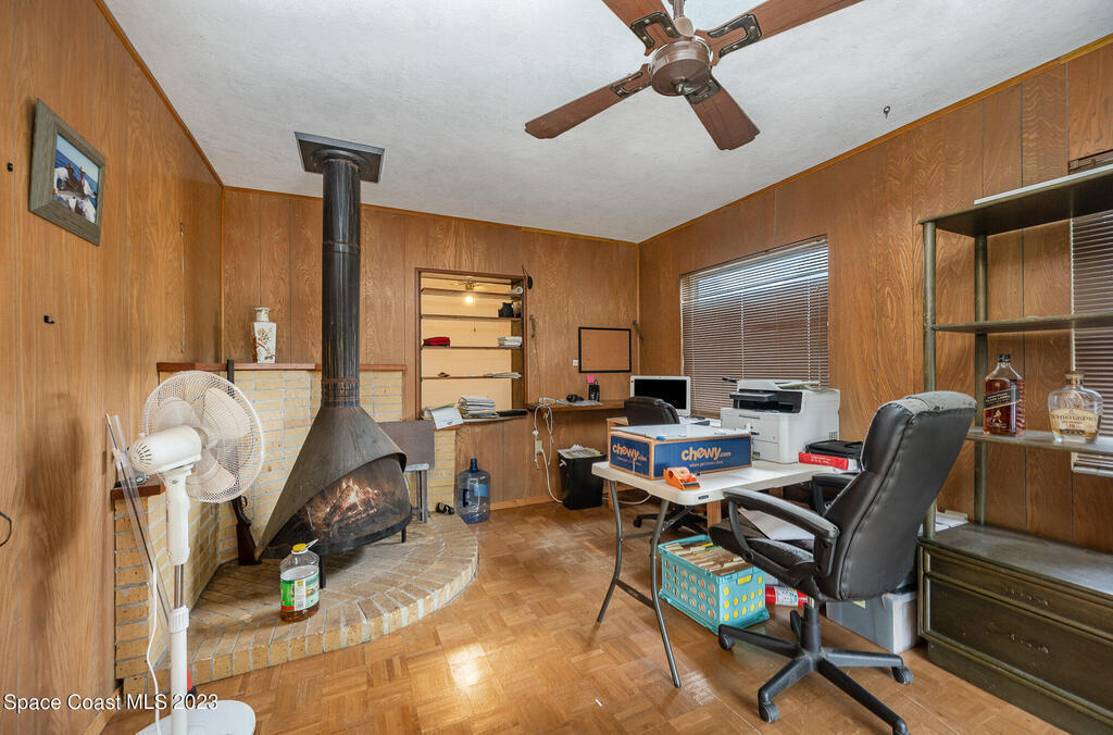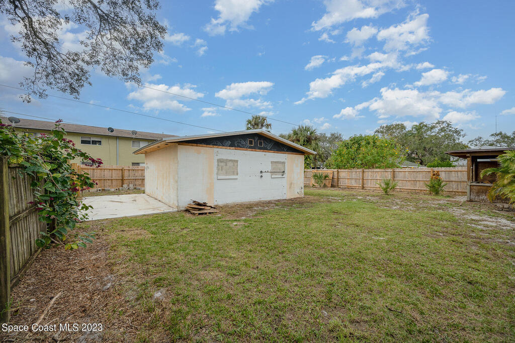 Bring your vision! This home is a true canvas to customize as your own. Welcome to the heart of The Eau Gallie Art District, where this 1950s home exudes charm & a timeless appeal. It is a 6-minute walk to all the local restaurants, bars and shopping and a drive over the bridge to get the ocean. The home has two living rooms, one with a cast iron furnace surrounded by a rustic brick backdrop, adding beautiful character and another for a true ''hangout'' space to entertain. Adding to its allure and profit potentials, a 480 sq. ft. building in the backyard w/ electric & plumbing opens doors to countless possibilities - a studio, home office, or guest retreat. This can pull in about $1,300/mo on an annual lease, and easily double as a STR. The home has a new electric panel and has been replumbed out to the street. Water heater and AC are in good condition and the seller is willing to replace the roof prior to closing.