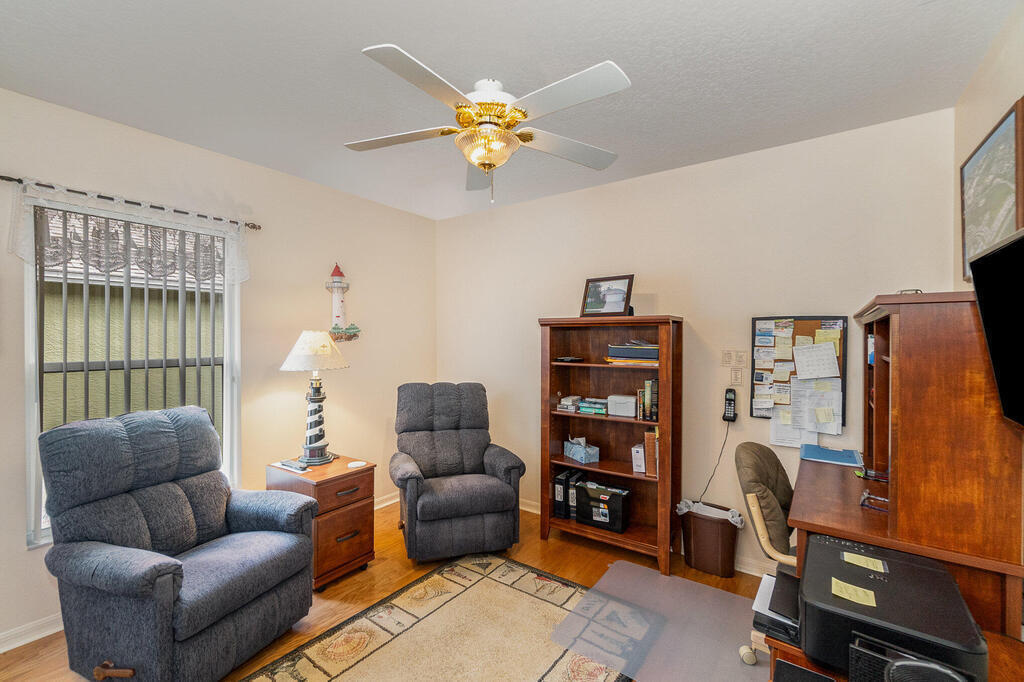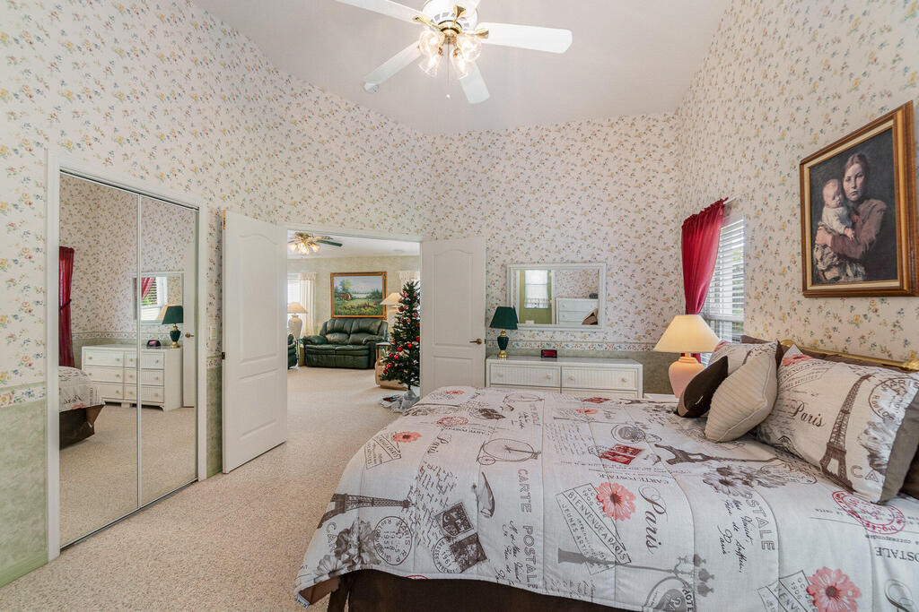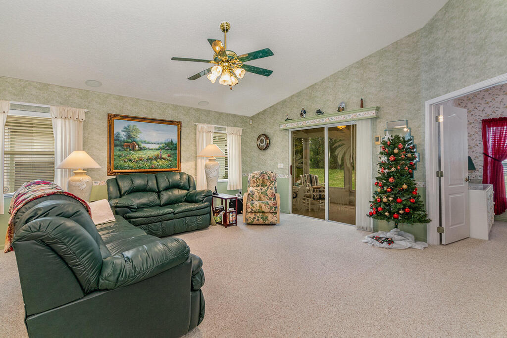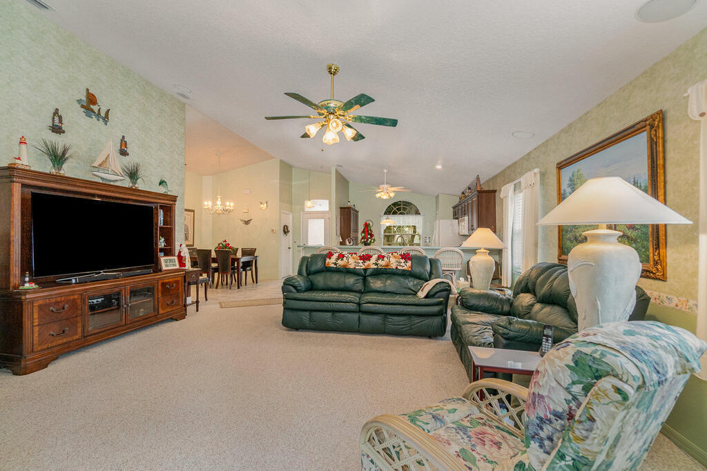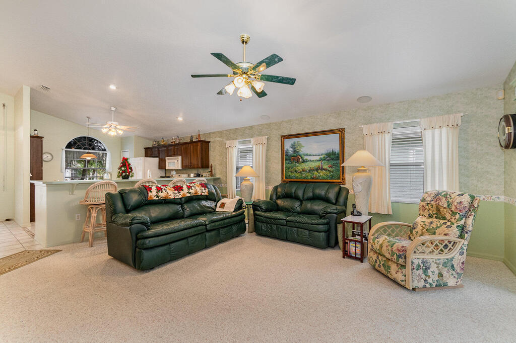 Well cared for by original owner. Only lived in 6 months out of every year since built. Jim Morris built with superior foam block exterior walls and interior rounded corners. Nice open floor plan, kitchen has long breakfast bar and opens into family room and dining room is off to the side. Plenty of kitchen cabinets and large pantry added. Cabinets have been resurfaced + crown molding. Spacious primary suite. Screen porch is tiled and enclosed. No back neighbors, preserve like view. All appliances stay including washed and dryer, Electric and accordion storm shutters, laundry sink. Located on a cul-de-sac street in a gated community. Great NE pal Bay location. Close to shopping, restaurants, L3 Harris and more. Roof replaced 2019. Meticulously maintained. Furniture available