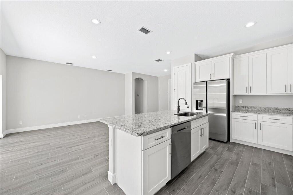 Thiis 4 bedroom custom home has a canal in the back, on city water has 42 inch white shaker cabinets with soft close doors and drawers, granite/quartz countertops, 8 foot doors, stack stone on exteriror, plank tile throughout the home, frameless glass shower enclosure, stainless steel appliances including a fridge and the list goes on. Builder will contribute for rate buy down or closing costs.