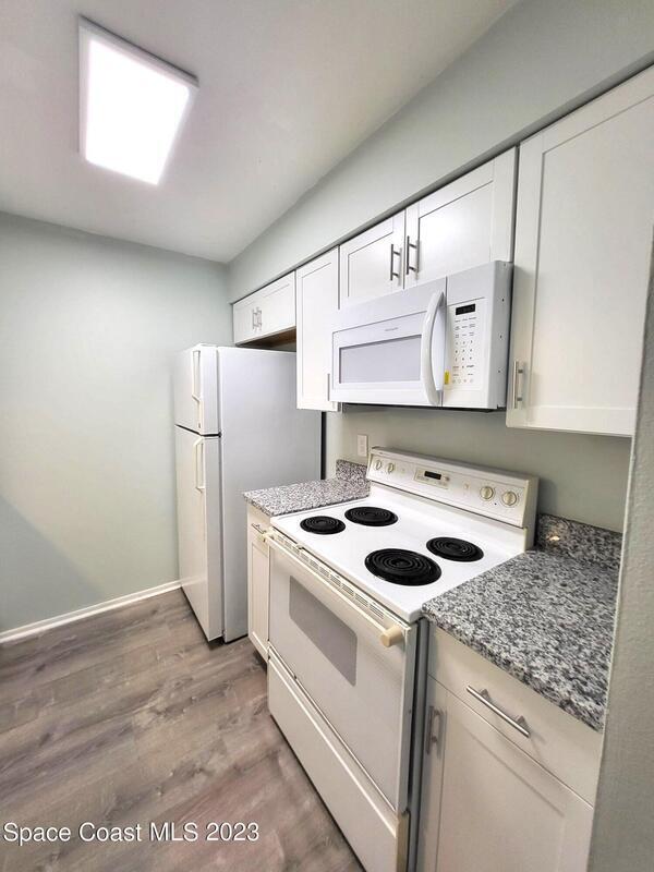 WOW - ALL THIS FOR $129,900!!!Come see this great 2nd floor 1 bedroom corner unit condo that has been recently updated with a new white shaker kitchen, granite counters, new lighting, fresh paint, new luxury vinyl plank flooring throughout, new bathroom vanity, new mirrored closet doors in the bedroom, and new electric panel. This unit is light and bright with lots of windows, and is move-in ready. Condo frees are very affordable at $173 per month (but may go up slightly in 2024) and include cable TV, Internet, water, sewer, exterior maintenance of the building, lawn and landscaping, and reserves. One small pet under 20 lbs. is allowed.It's located south of Hwy 46 off Carpenter Rd. in north Titusville. .